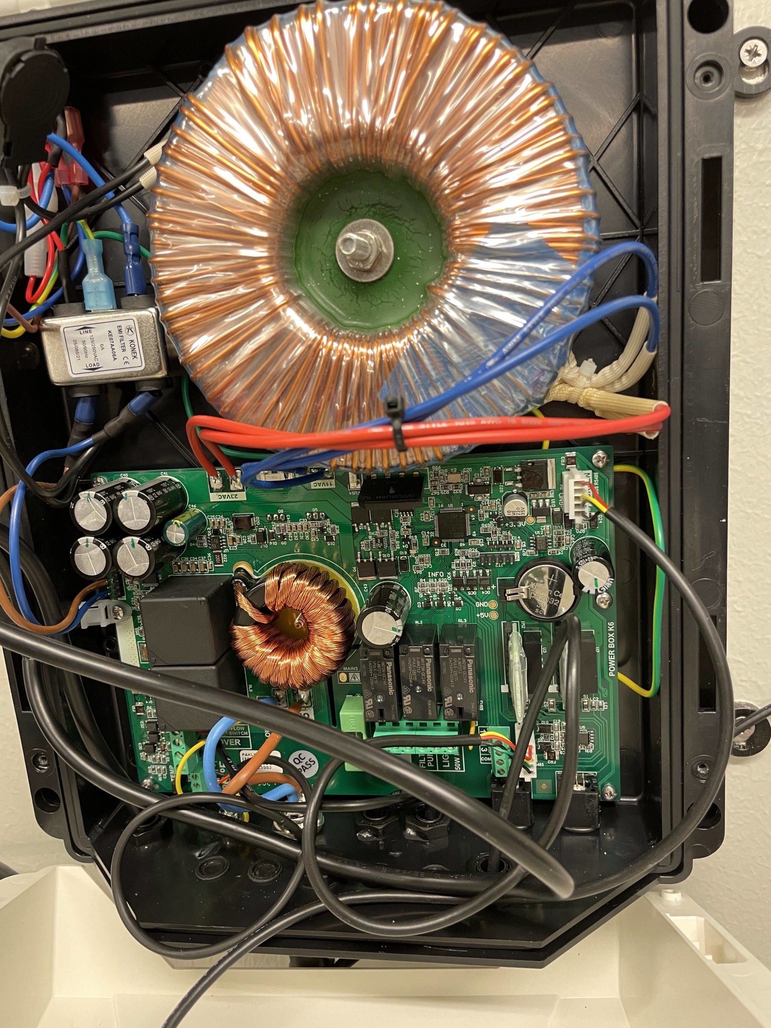 Nu har jag varit ut i garaget och fotat hur klorinatorn ser ut på insidan. Här syns det lite skapare. Då kanske det med säkerhet går att avgöra om DRY-Filter Pump-kontakten kan nyttjas för 230VAC styrsignal till kontaktor för huvudmatning av cirkulationspump.