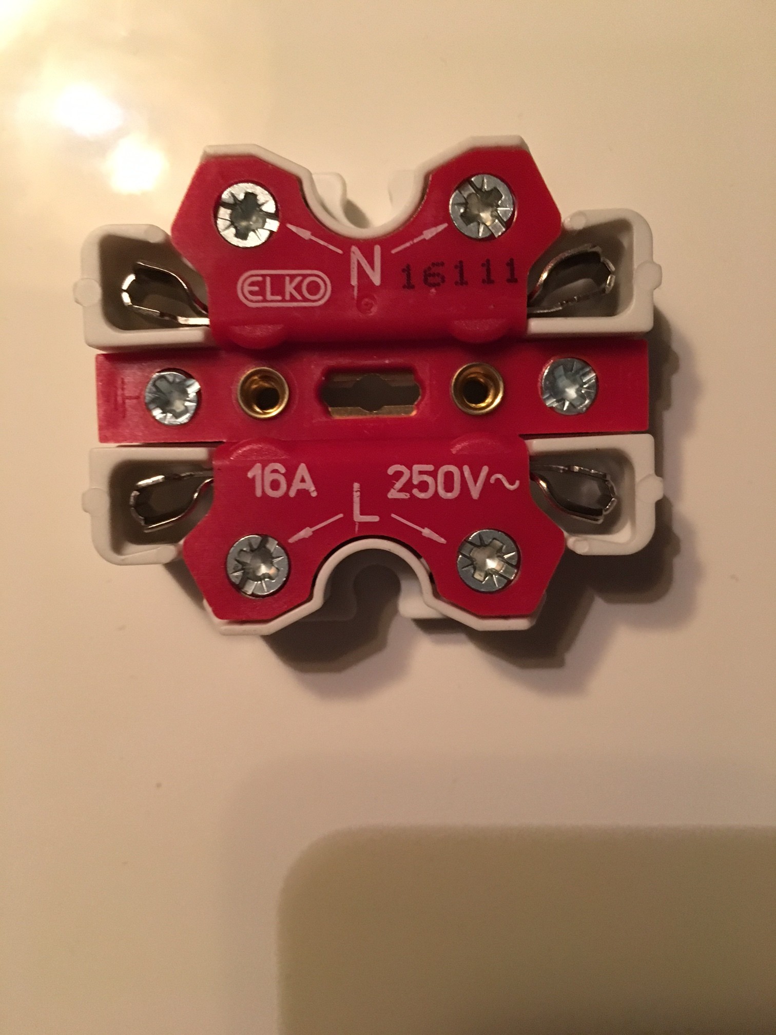 Jag har följande fyra trådar som kommer ut ur väggen och ska koppla dessa till ett tvåvägs uttag.