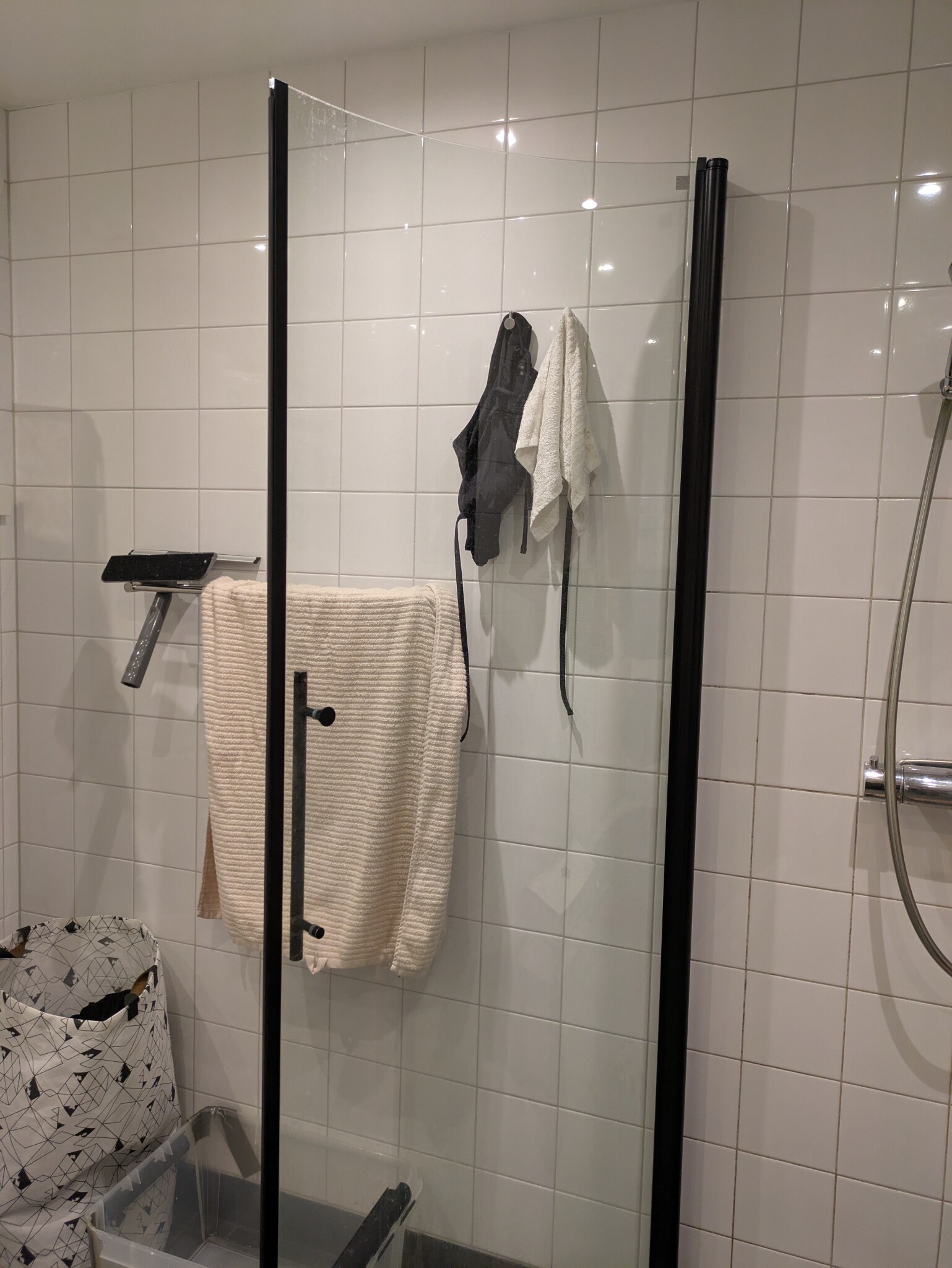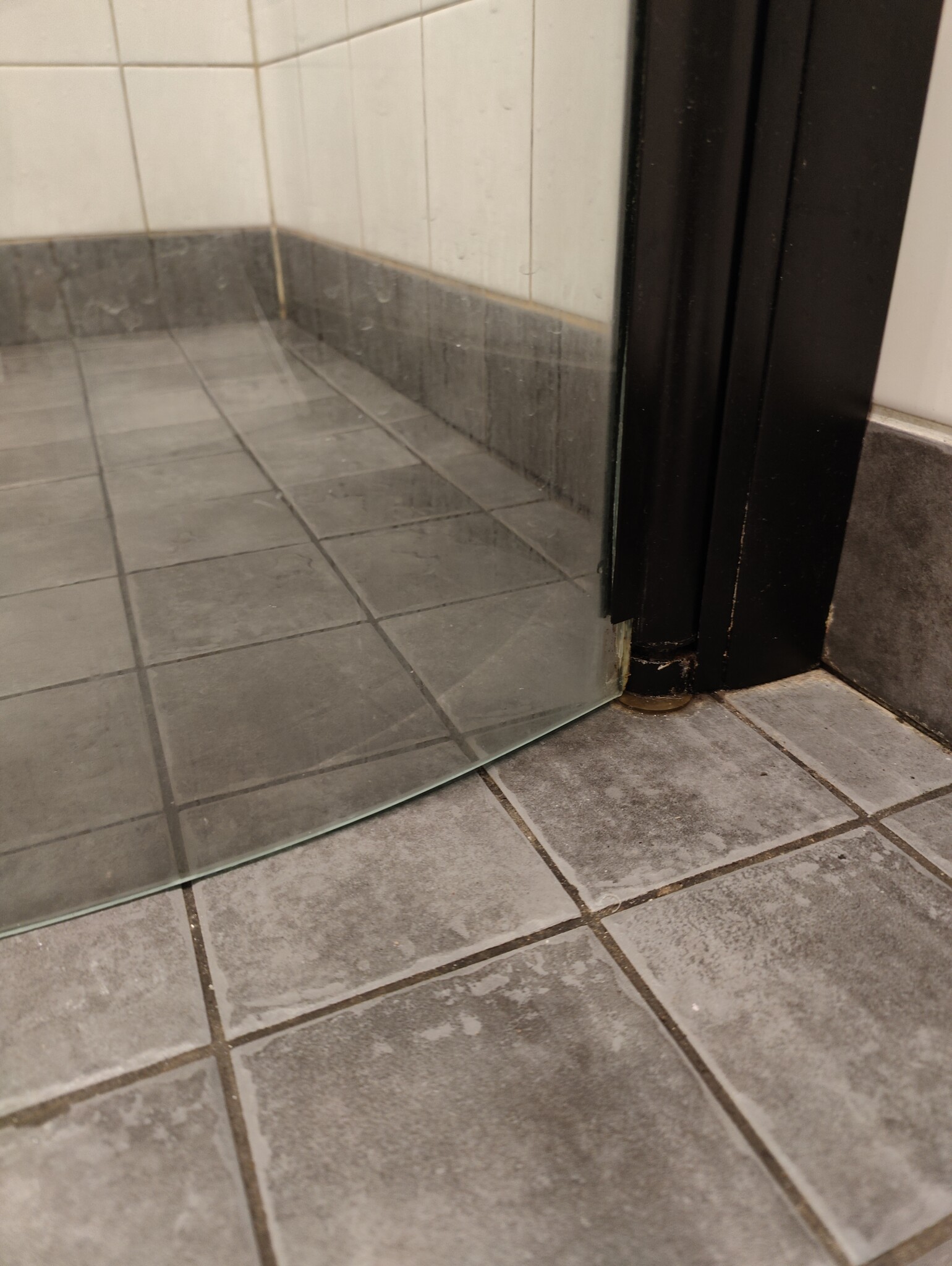 För ett par dagar sedan märkte min man från ingenstans att en av våra glasdörrar till duschen glidit ned i sin skena och stod mot golvet.