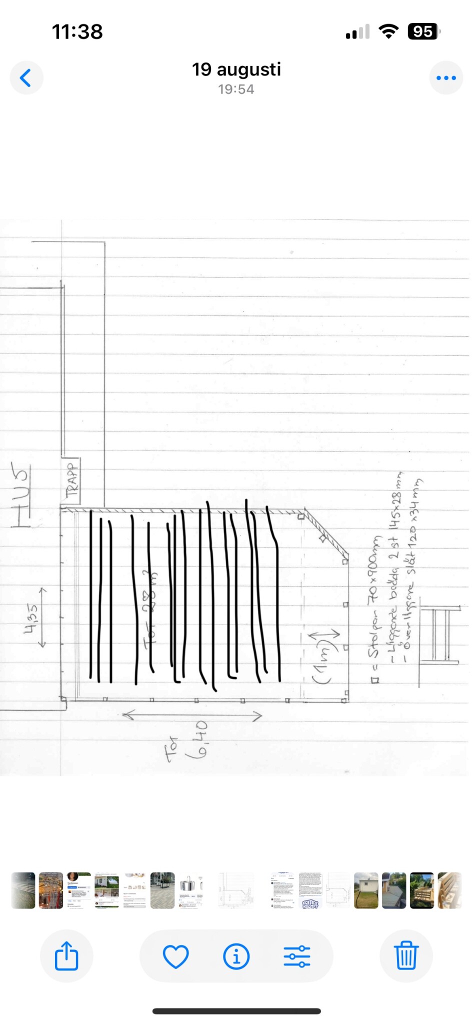 Hej! Behöver hjälp. Ska jag lägga trall längst husetsvägg eller från husetvägg? Se bilder