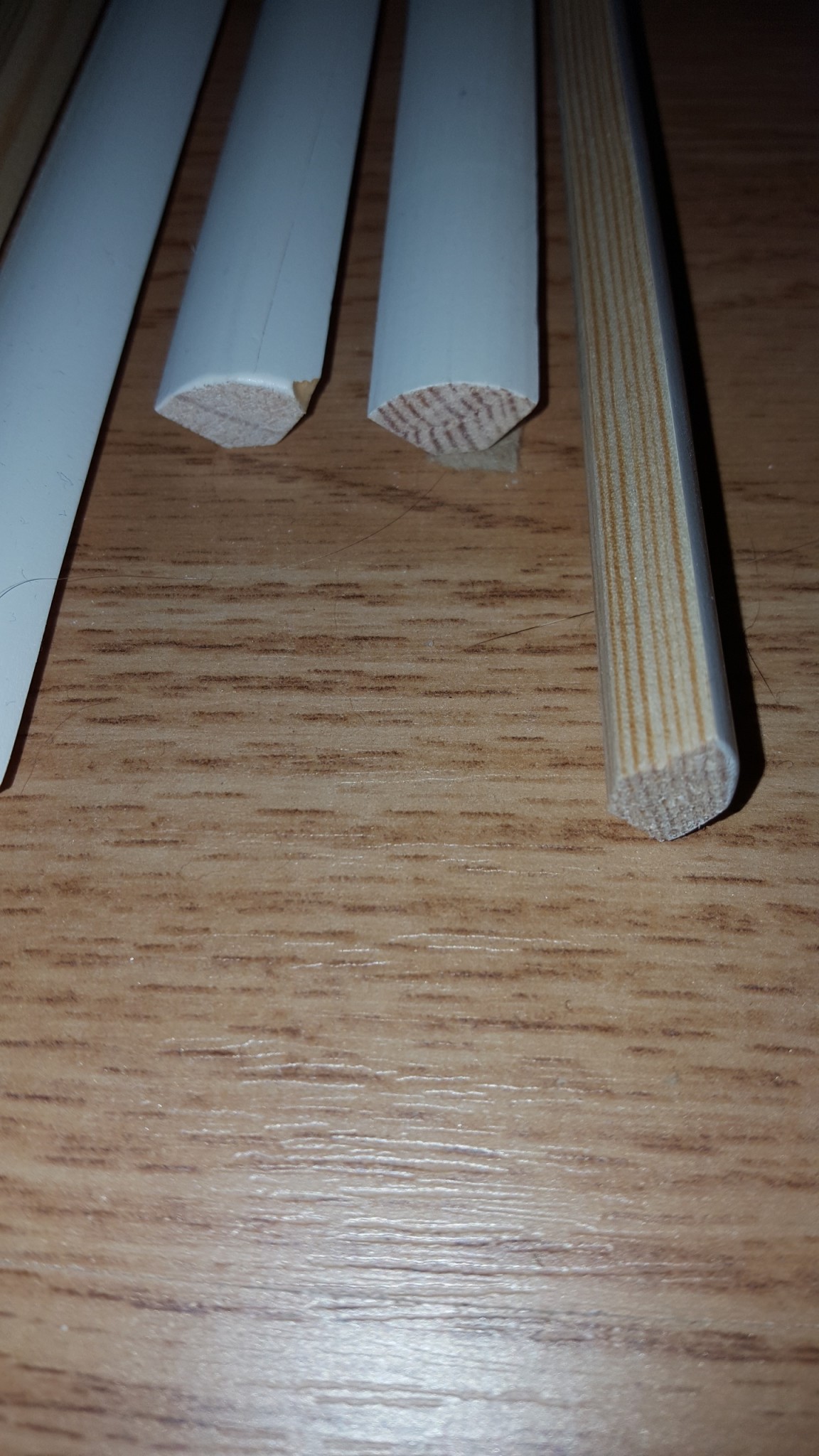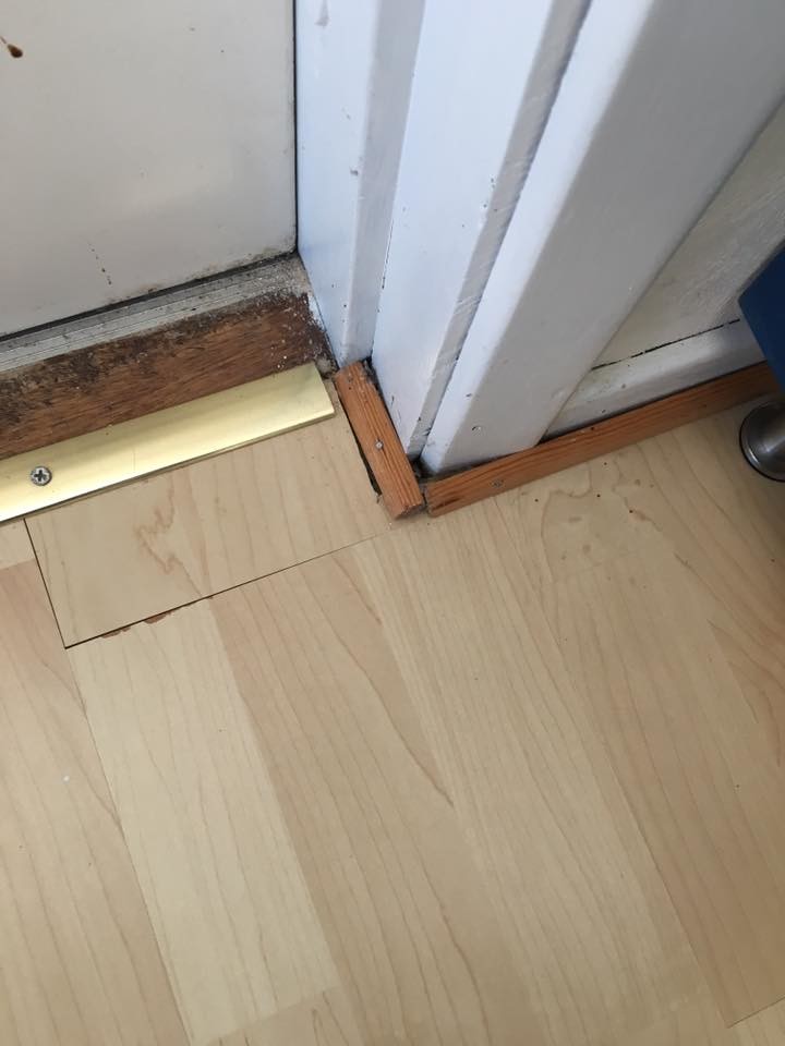 2: samma som föregående men arrangera dessutom listen så att hörnen inte är 90 grader utan "trubbiga" (ber om ursäkt, jag är en fullkomlig idiot när det gäller att förklara hur jag tänker. Vilket kanske beror på hur jag tänker...) så att hålen i golvet täcks. Som tidigare fyll ramen inåt mot karmen.