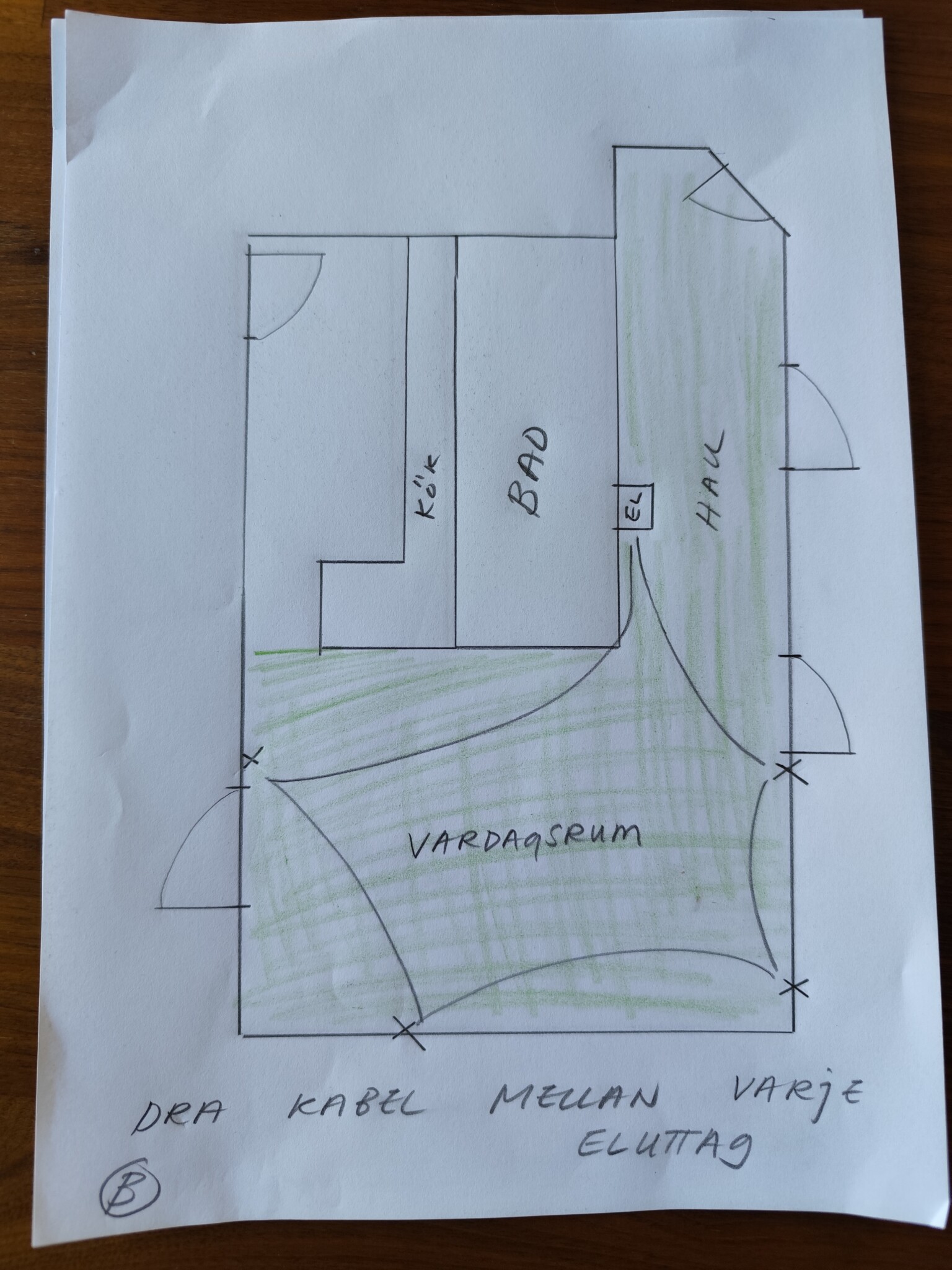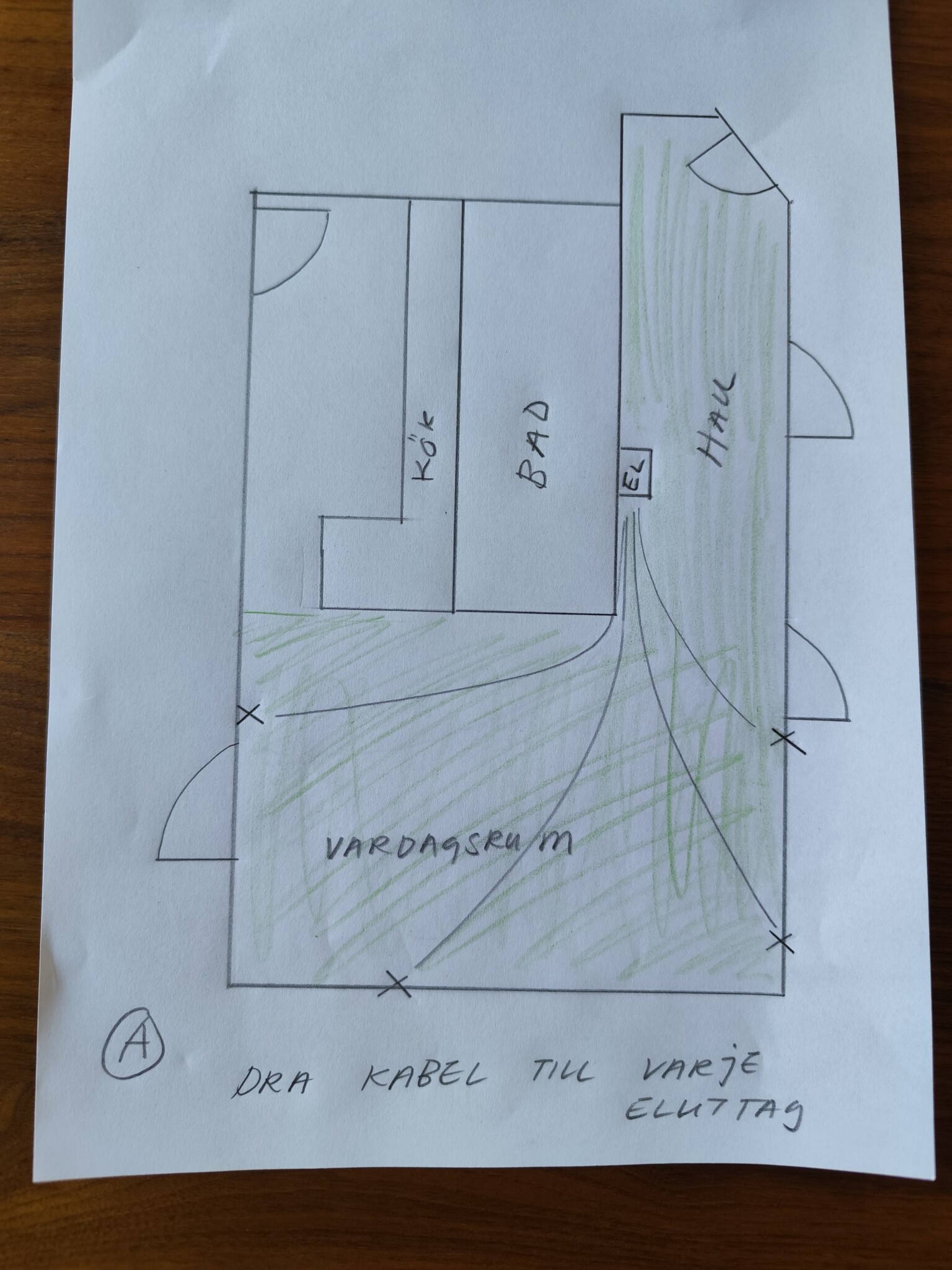 I samband med detta tänkte jag att det vore smart att lägga/dra elkablar undergolvet för att göra det lättare för elektrikern att installera eluttag vid senare tillfälle.