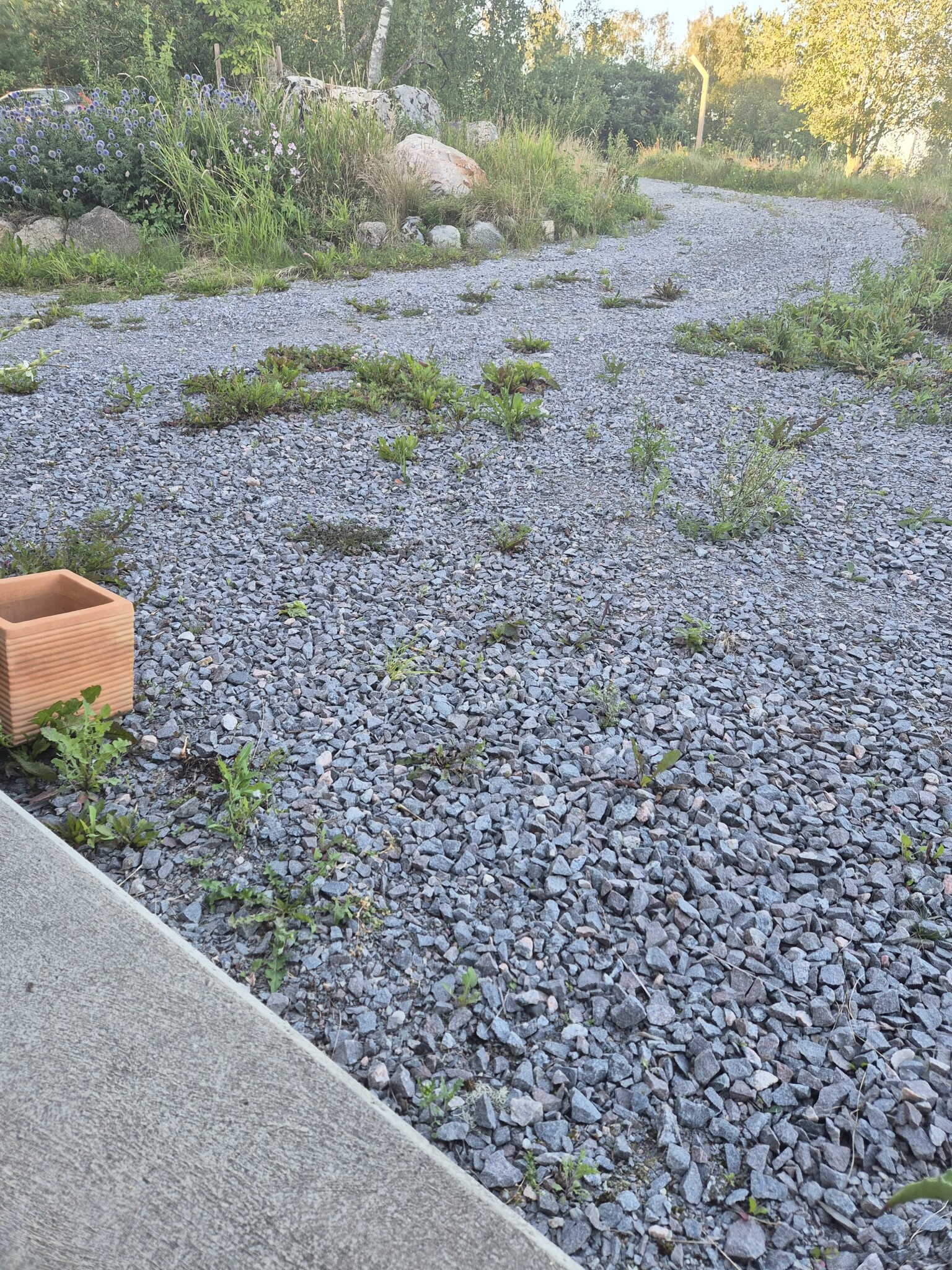 Har en uppfart och parkering vid nybyggt hus som nu består av grov sten/kross, se bilderna. Vad behöver jag göra för att kunna lägga trevligare gårdsgrus utan att stor sten kommer uppkrypande igen? Plana av, lägga markduk och sen grus? Markarmering fick jag tips om då uppfarten lutar något och det är bra att hålla grus på plats, är det ett bra alternativ? Kan jag lägga gårdsgrus rätt på den grova sprängstenen? Alla tips välkomna![]()
