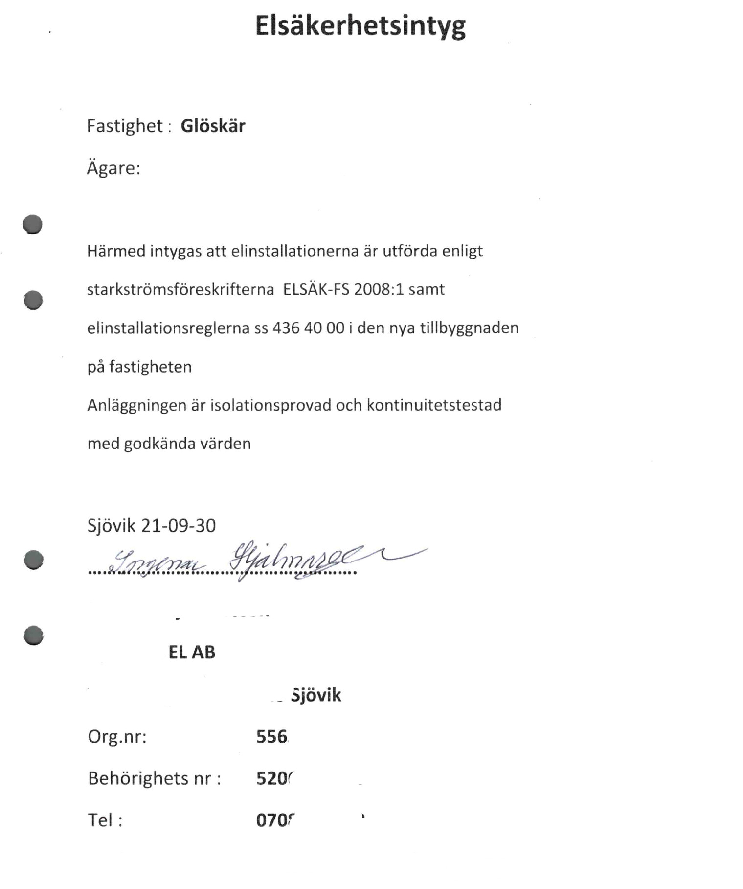 et vara i mitt fall bara att maila min elektriker så skickade dom ett intyg på att elen var installerad korrekt och uppmätt av auktoriserad elektriker.