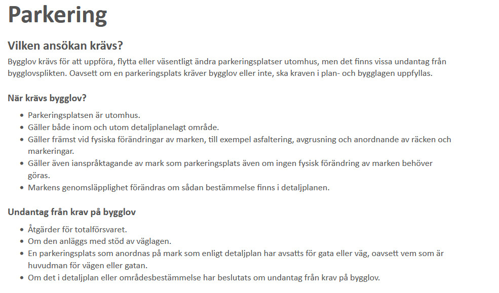 Kommunen missar att redogöra för bygglovsundantaget för parkering till en- och tvåbostadshus. Här:Storsockret skrev: