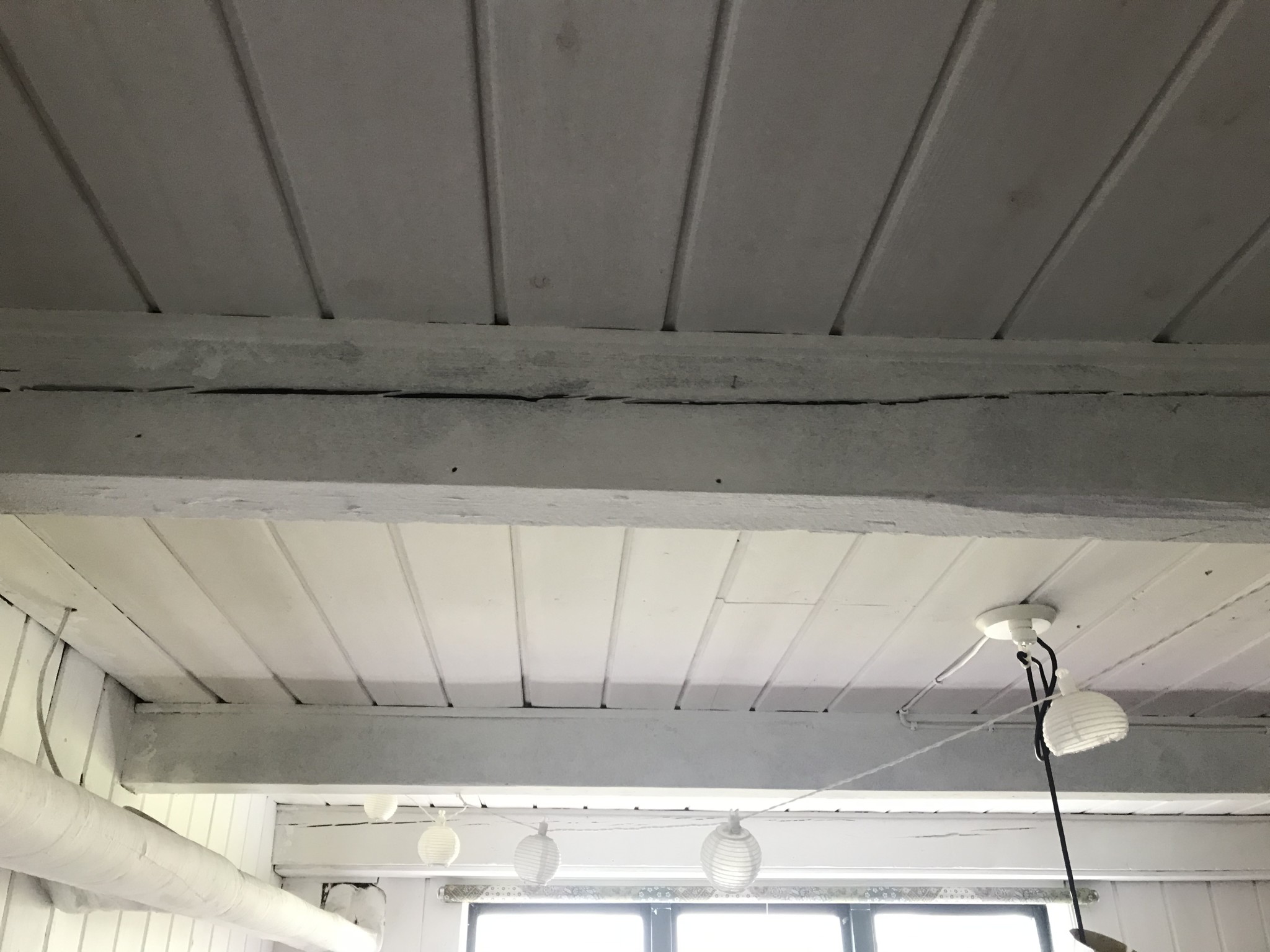 Takhöjden är 230 i överkant på reglarna och 215 i underkant. Vi ha kvar ca 2 cm synligt av reglarna. Huset är byggt 1947.