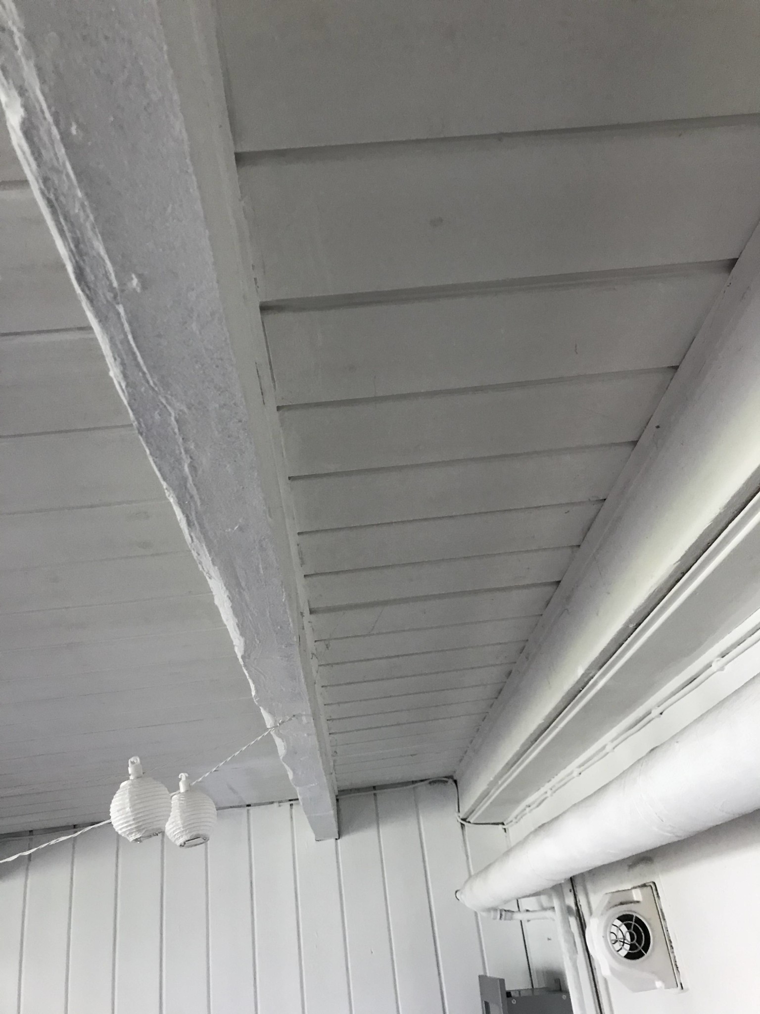 Golvet mellan rum i entréplan och gillestuga är dåligt isolerat, både prat och steg hörs tydligt mellan våningarna. Det är fem helt synliga reglar 150x45 i taket med 120 cm mellanrum. Det är endast spåntade golvbräder 38mm som golv och en tunn takpanel i gillestugan.