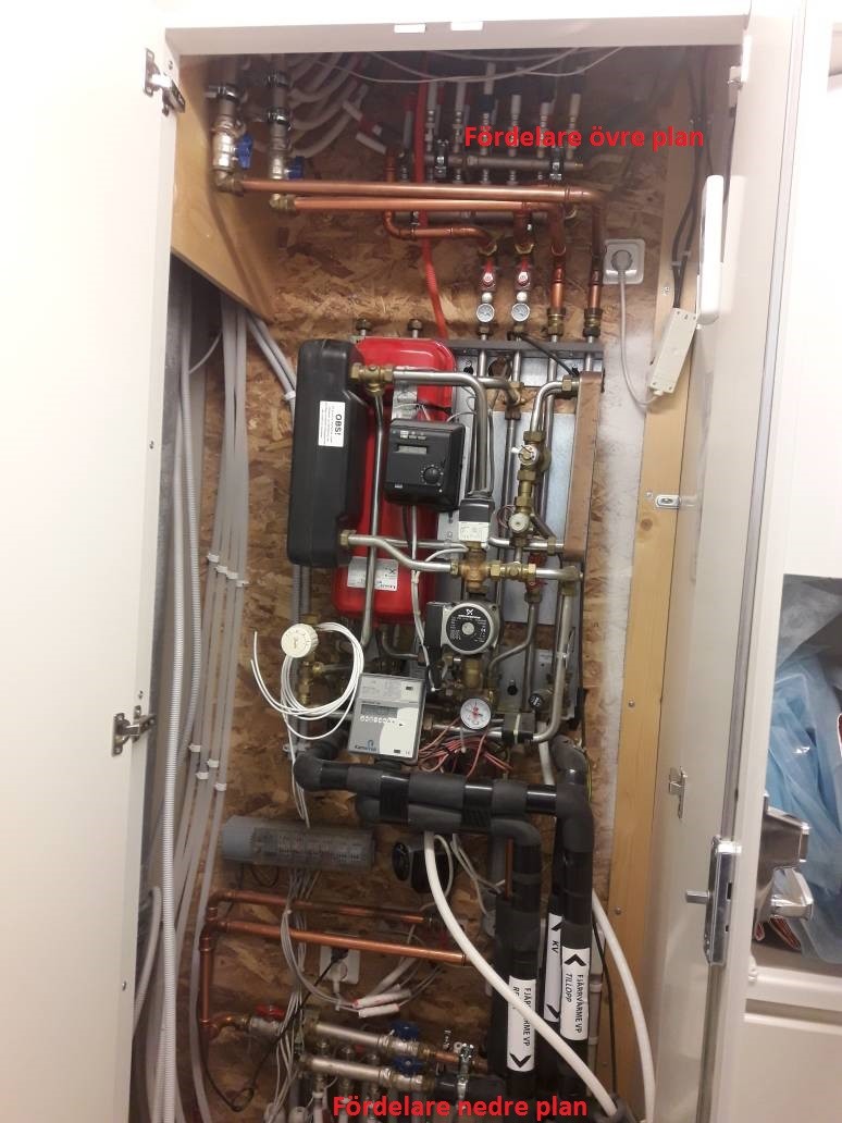 Jag har gjort en utbyggnad med två nya golvvärmeslingor i bottenplan på detta tvåvåningshus. Utökade befintlig golvvärmefördelare för nedre plan med dessa två nya slingor, inget problem.