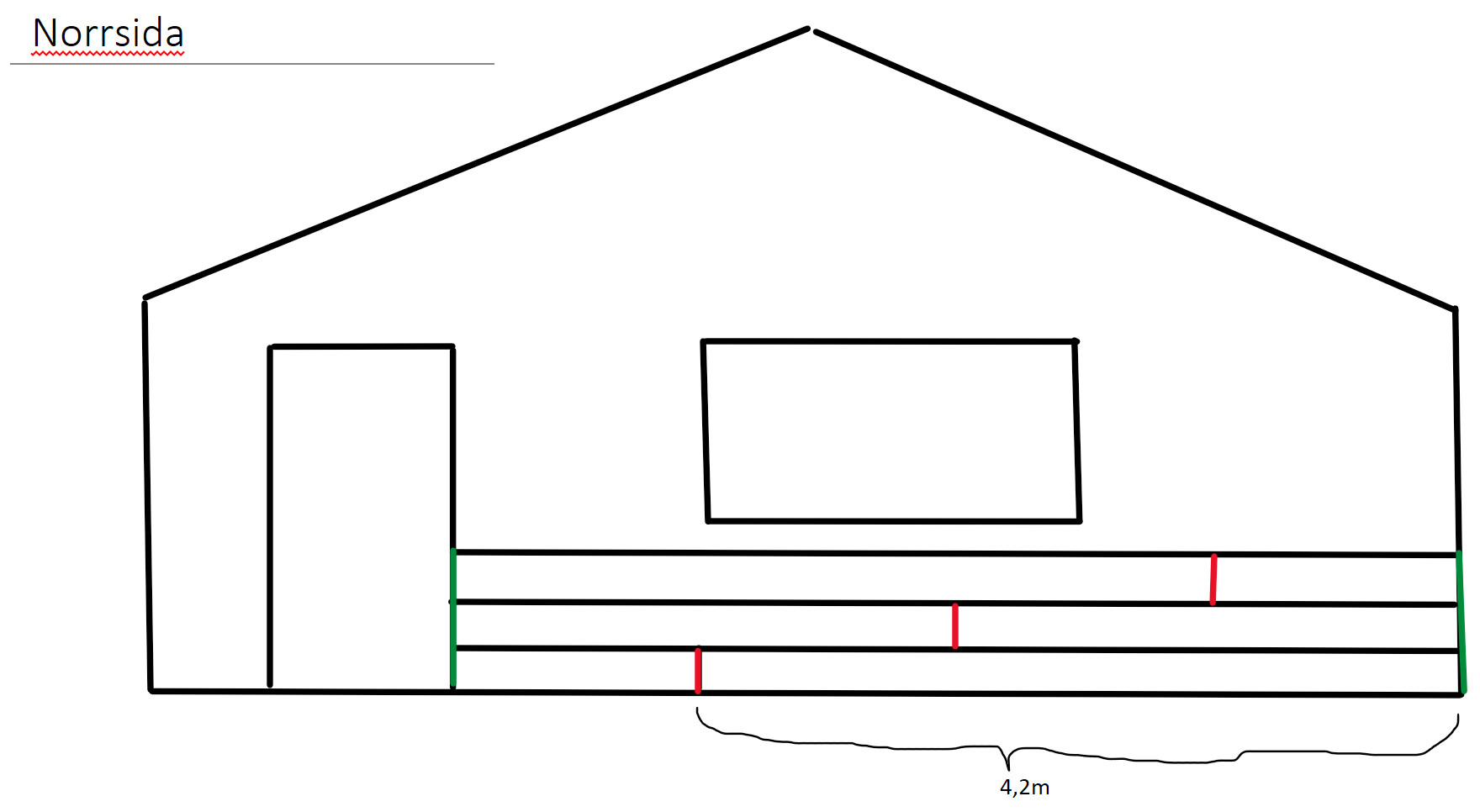 När jag var hos färghandeln sade personalen att det är mkt viktigt att måla ändträet (vilket jag visste sedan tidigare). Dock, rent praktiskt är det svårt att få till all målning + uppsättning tidseffektivt. Nedan ses en enkel skiss::