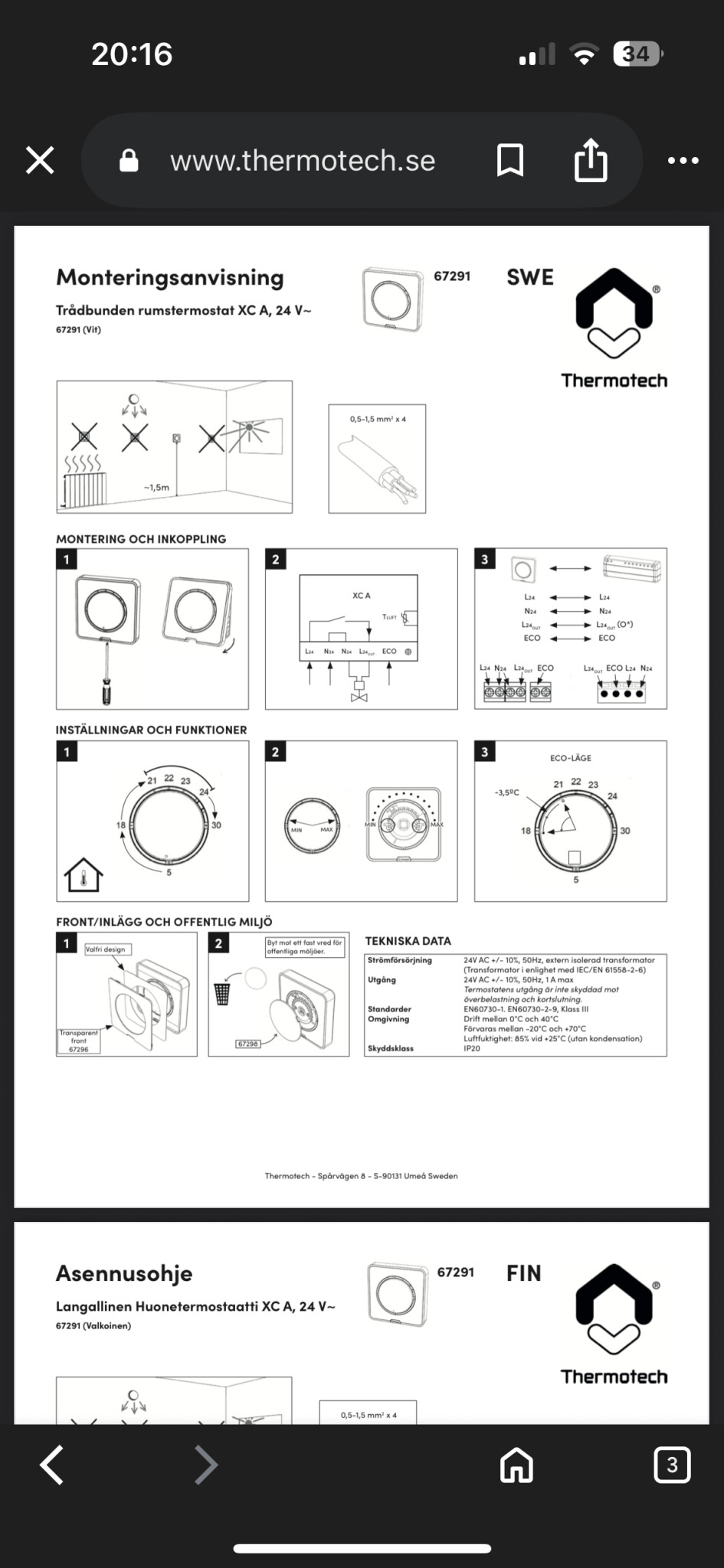 Gamla termostatens installationsmanual