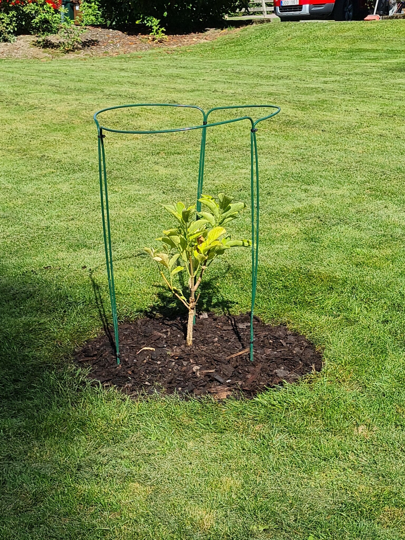När trädet blir större klarar det av konkurrensen från annan växtlighet mycket bättre men nu är det en liten nybörjare med dåligt utvecklat rotsystem så då behöver det hjälp både med vatten och mat.