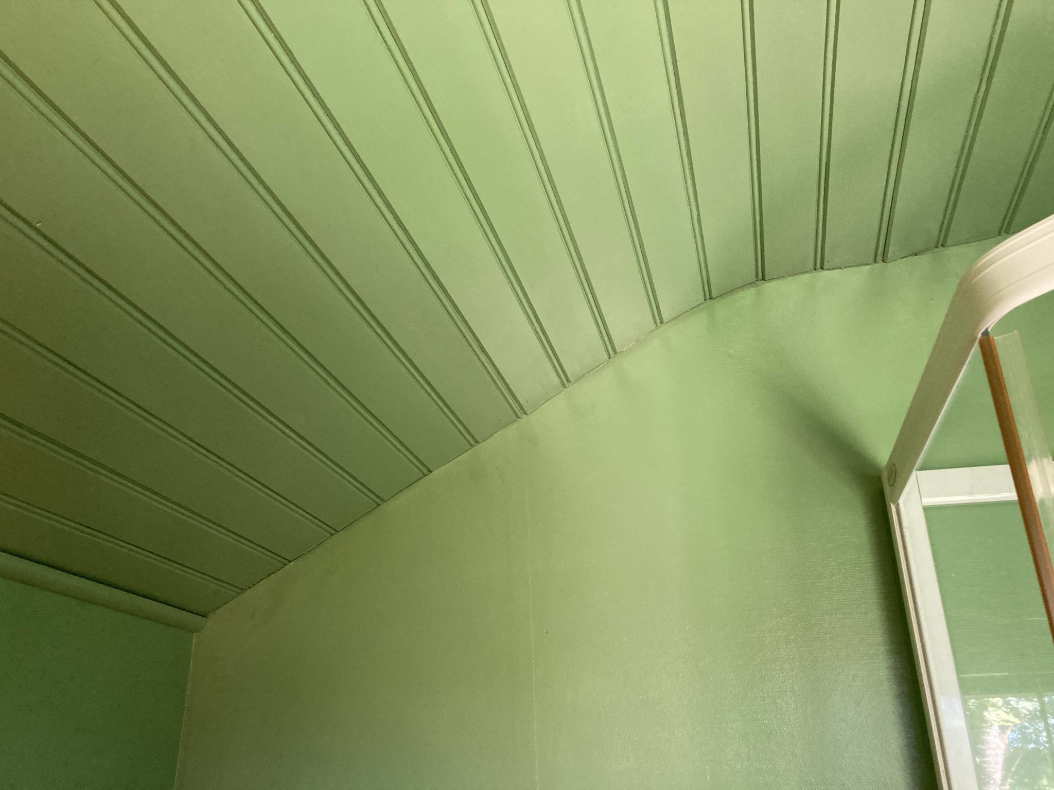 Vi håller på med ett enklare duschrum på landet och behöver input i hur vi sätter fast smyglisterna mot det böjda taket. Listerna målades förra året och pga annat (barn...) så kommer du upp först denna sommar och