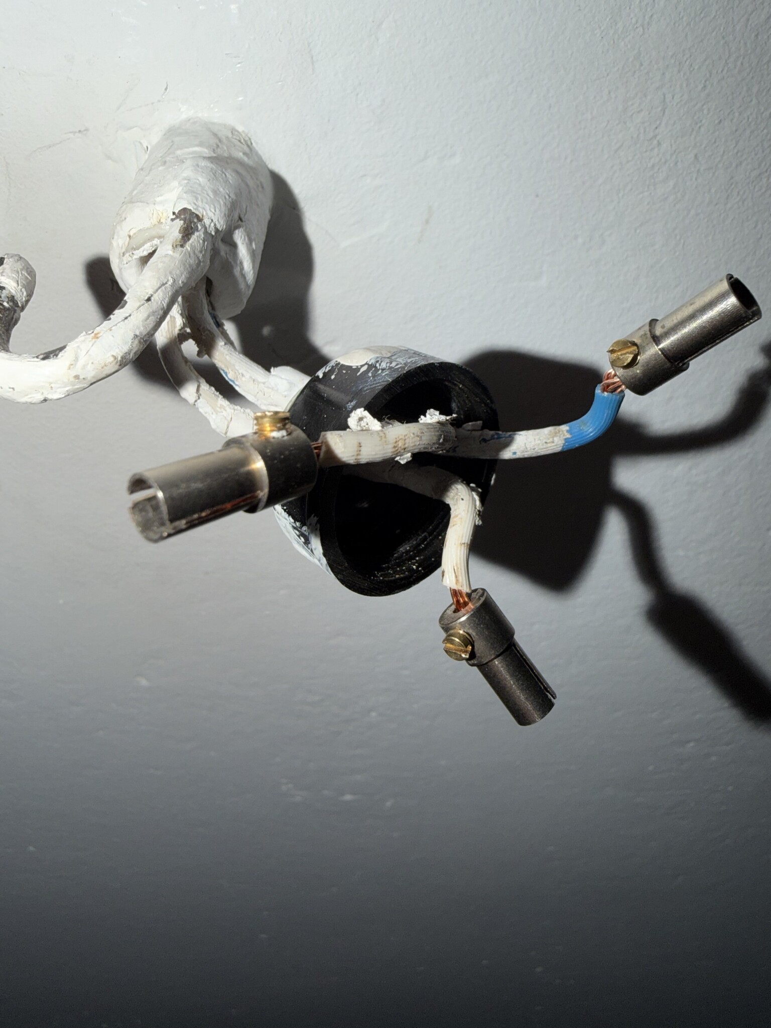 Stickproppen i taket har två vita kablar som jag antar båda är faser och en neutral. Lampan är jordad. Går det här att lösa? 🤨