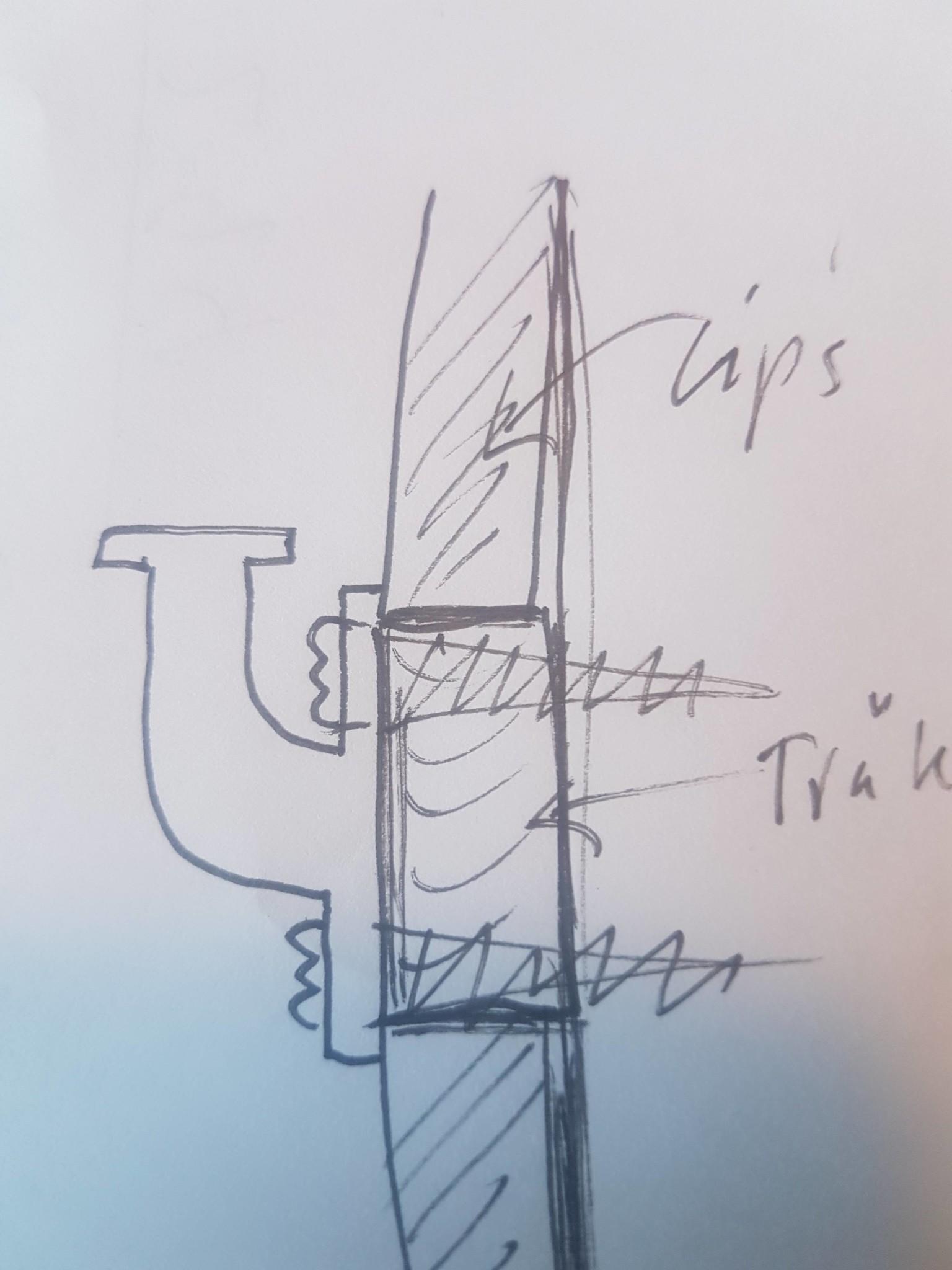 Vi brukar använda hålsåg Ø35 genom gipsen å sätta en distans av lämpligt material trä, mdf eller plast in till fast vägg.