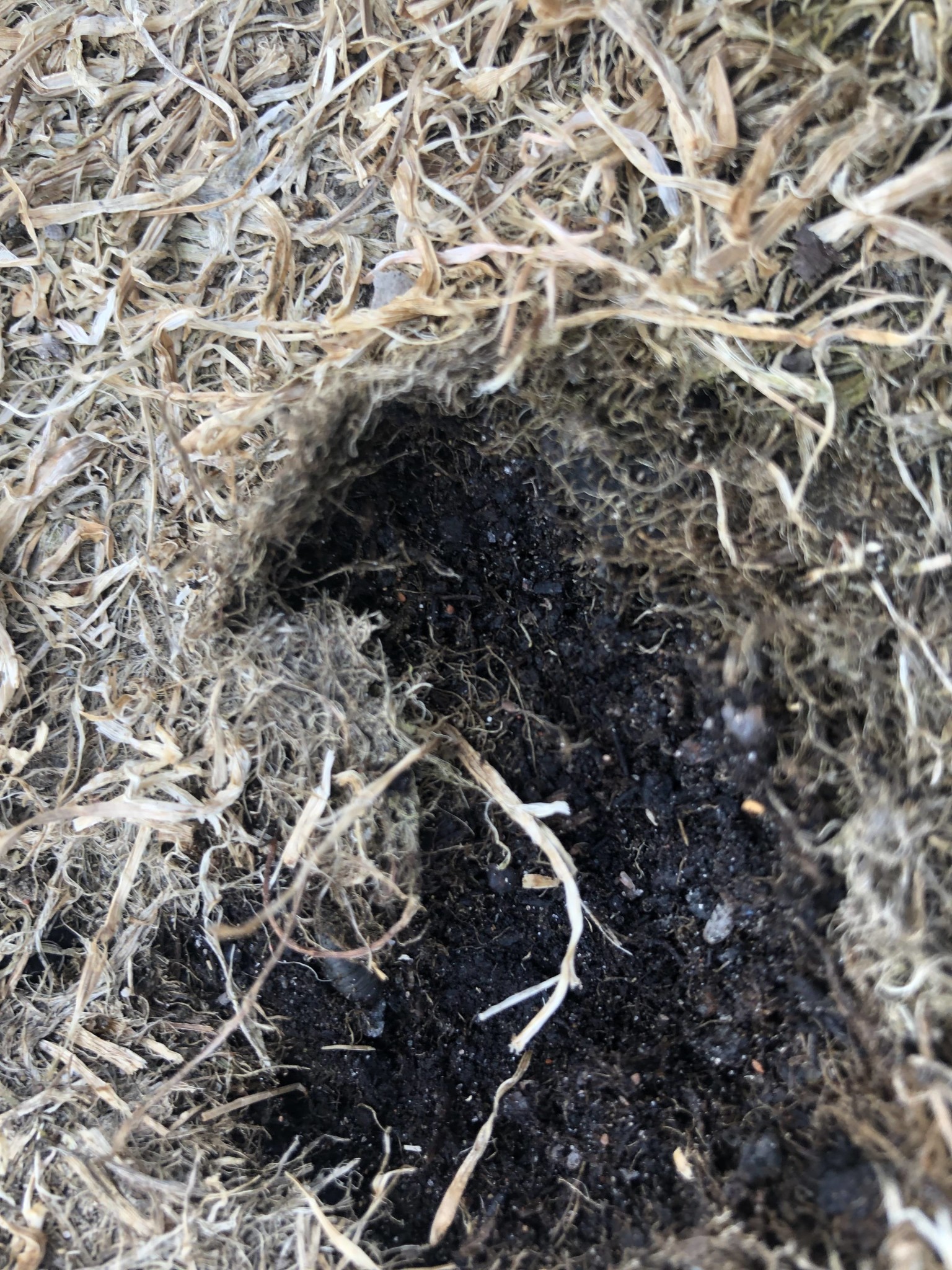 Under filtytan ser det verkligen stendött ut. Bara jord. Känns som att filten kvävt allting under.