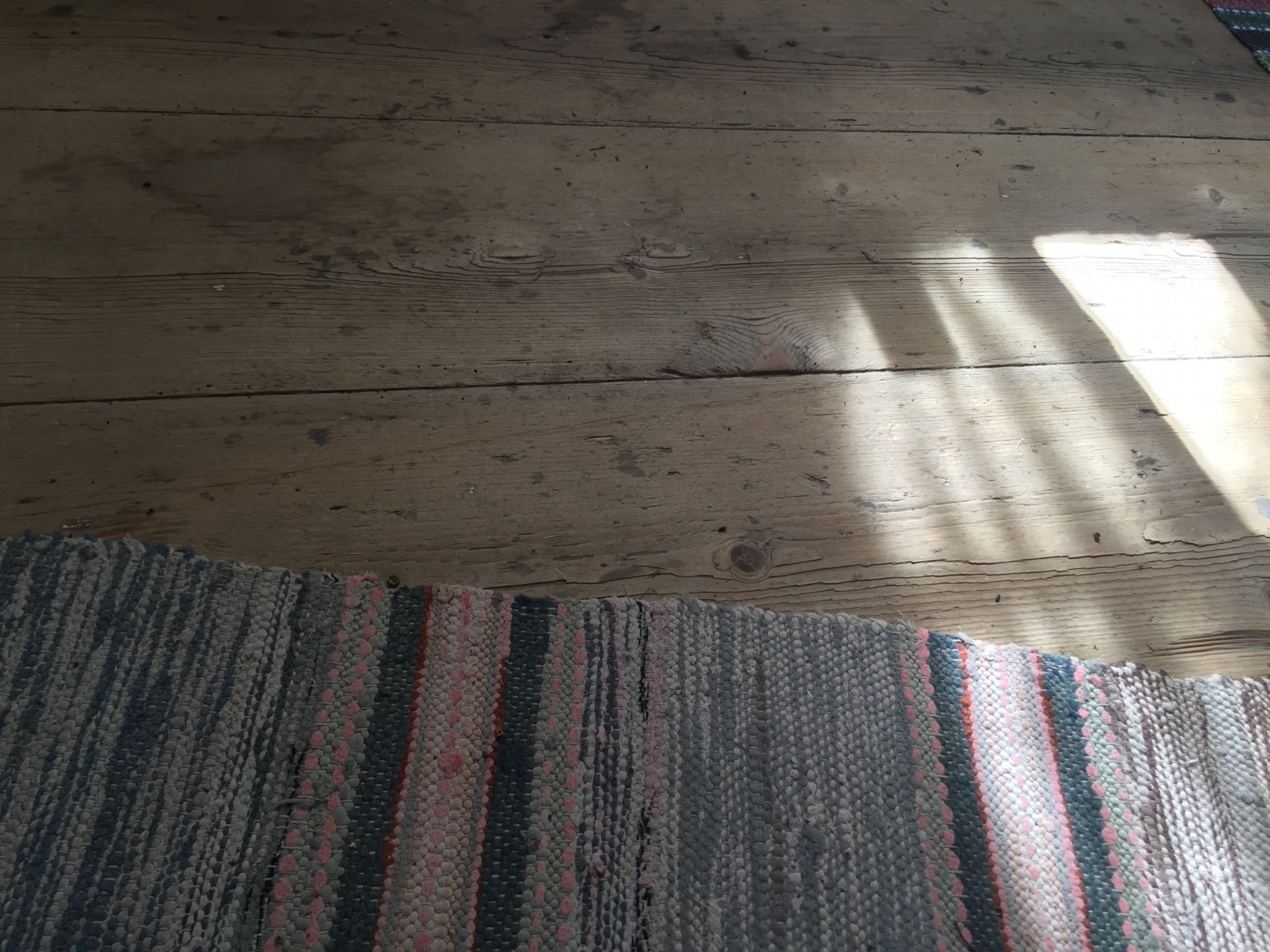 I en stuga under kork/plast mattan fanns det ett 150 år gammalt plankgolv.