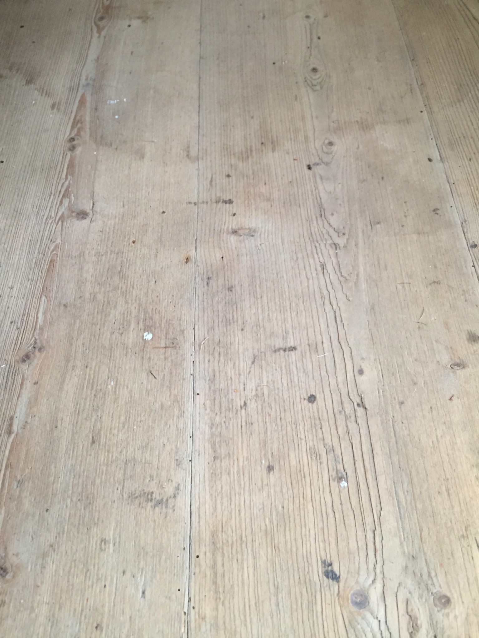 Hur bär vi oss bäst åt för att rädda golvet? Det är tyvärr ganska fläckigt och stickigt som bilden nedan visar.