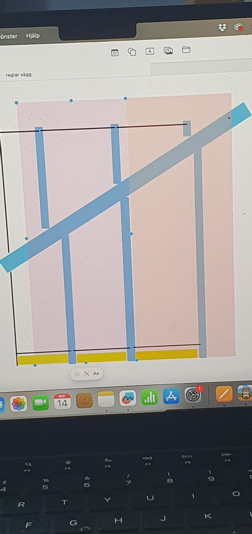 Vet inte hur tydligt det här är men det beige/rosa är alltså gipsskivor med 90-bredd och hur de skulle hamna i förhållande till reglarnaplåtrickard skrev: