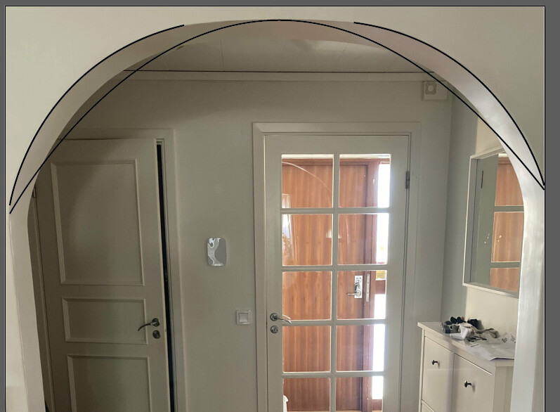 Vi har ett valv som inte är så snyggt, den kurviga linjen är inte jämn. Hoppas det syns på bilden. Vad är det enklaste sättet att rätta till det? Jag tänker att man kan lägga en ny jämn kurva strax under den gamla, men hur?