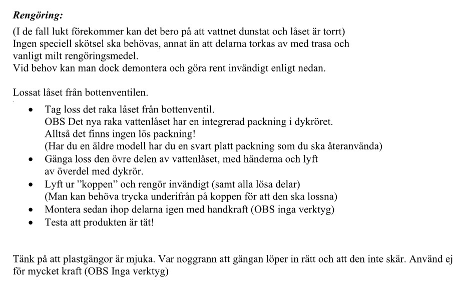 Såhär skriver tillverkaren Faluplast: (Ja dessa vattenlås finns fortfarande att köpa)