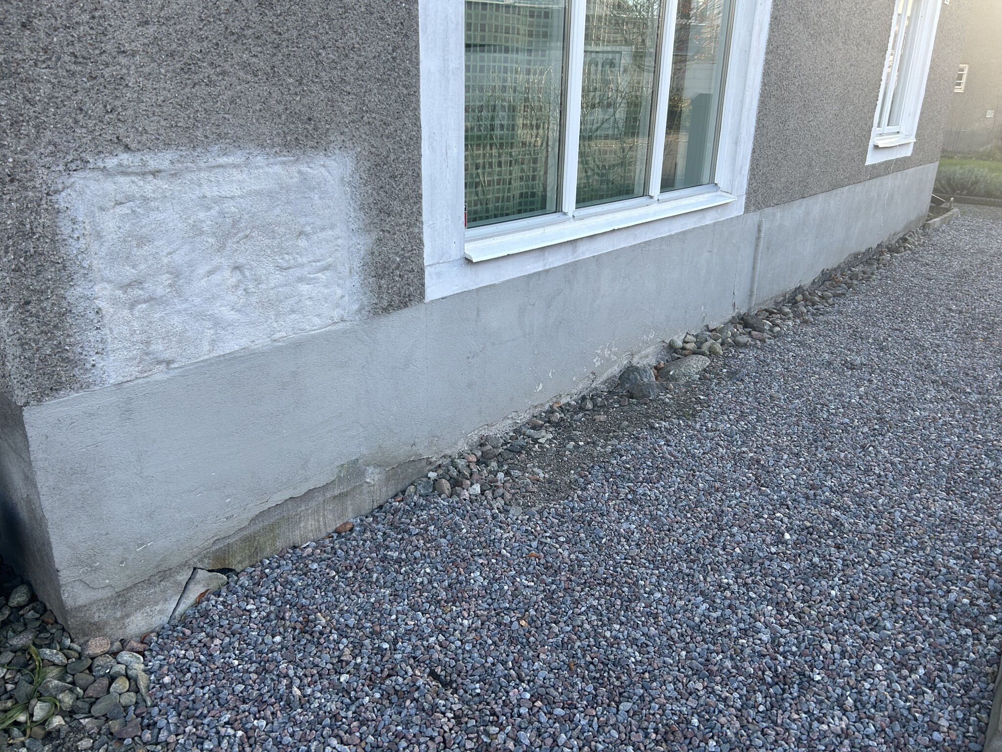 Hallåj, som ny husägare tog vi bort ett par buskar vid fasaden. Nu syns några sprickor längst nere vid grunden. Jag behöver expertisens råd om hur åtgärda dessa. Tips, råd och förslag mottages tacksamt!!!