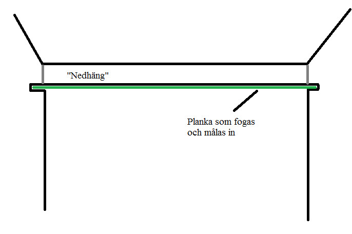 Vill du ha kvar en bit vägg överst hade jag byggt den i efterhand av reglar och gips. Det är en bra ide att ha ett "stopp" uppe mot taket för mat-os som annars sprids ut i övriga rummet
