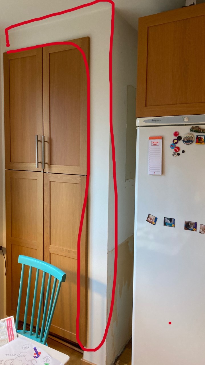 Denna mindre vägg har troligtvis varit ett skafferi eller något när fastigheten byggdes på 50-talet.