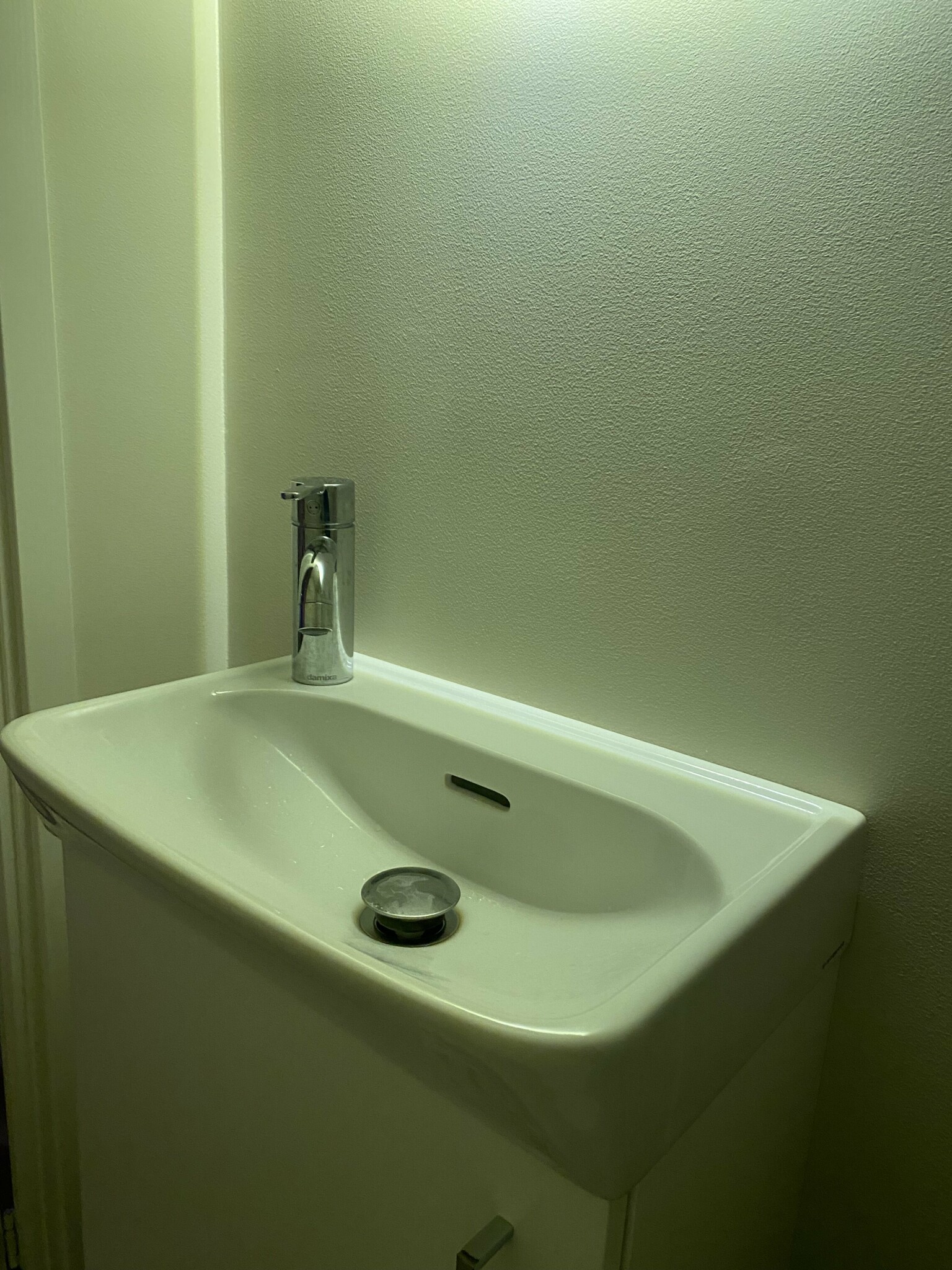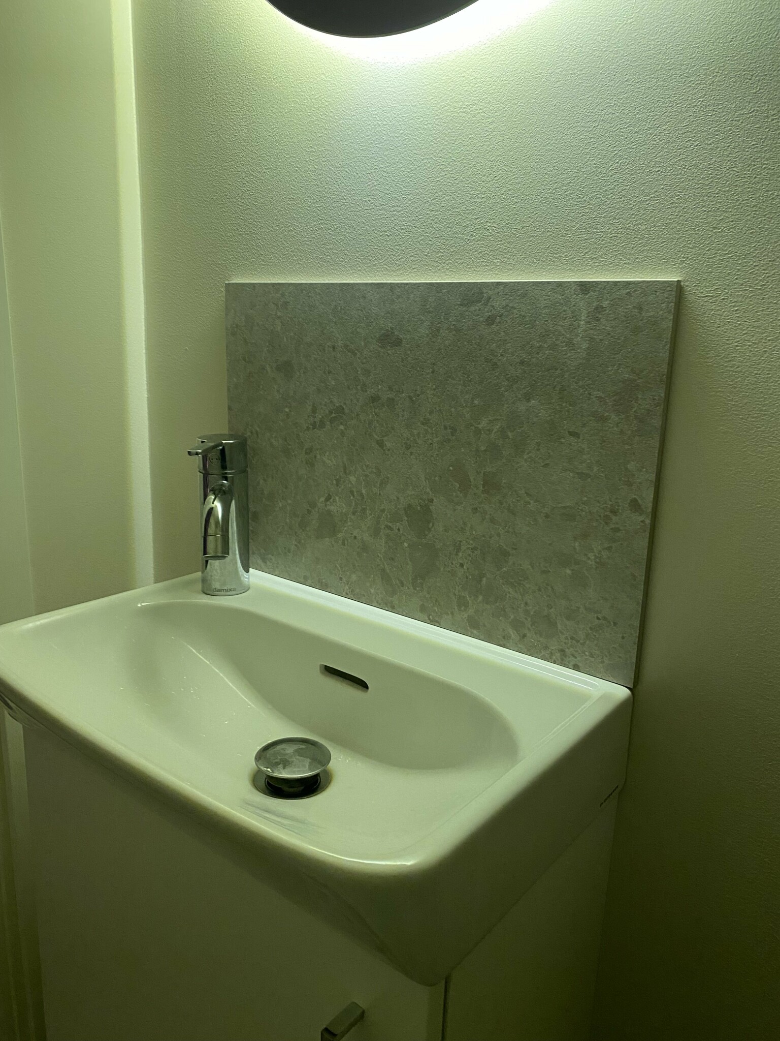 Vi ska sätta upp en 45x30 klinkerplatta ovanför handfatet. Badrummet är nyrenoverat för ett år sen och är nygipsat och målat.