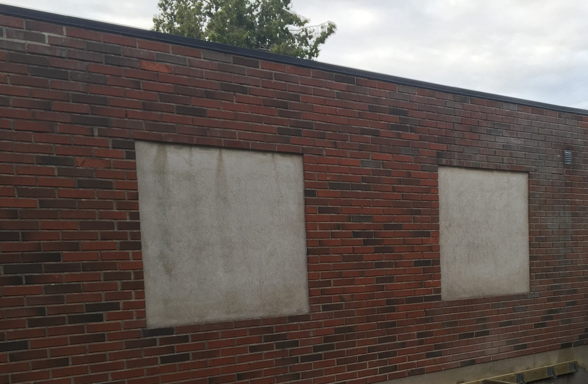 I mitt garage finns det två gamla fönster som murats igen med lecablock.