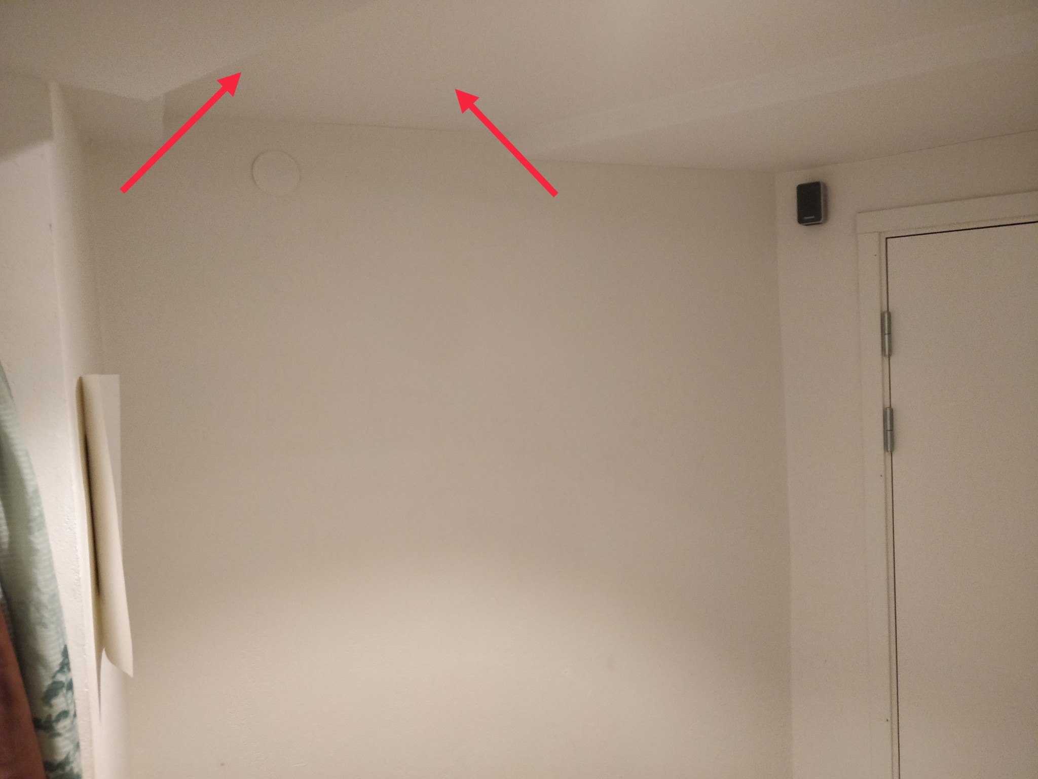 Här ser man att det sitter reglar i den "lägre delen" av taket som jag märkt ut på bilden men just den regeln hjälper ju inte mycket i mitt syfte. Man ser också skivorna som förmodligen utgör resten av innertaket.
