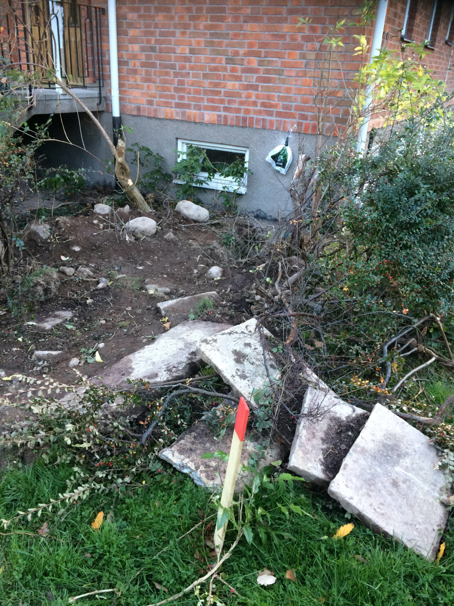 Men det viktigaste är att vid projektering om grävning ingår, eller som här överenskommelse med grävare, ta en genomgång av förutsättningarna. Återställa plattor, sten, asfalt, etc, ingår nästan aldrig utan de flyttas undan och gräsyta får en grovåterställning där finplanering och sådd görs av fastighetsägaren.