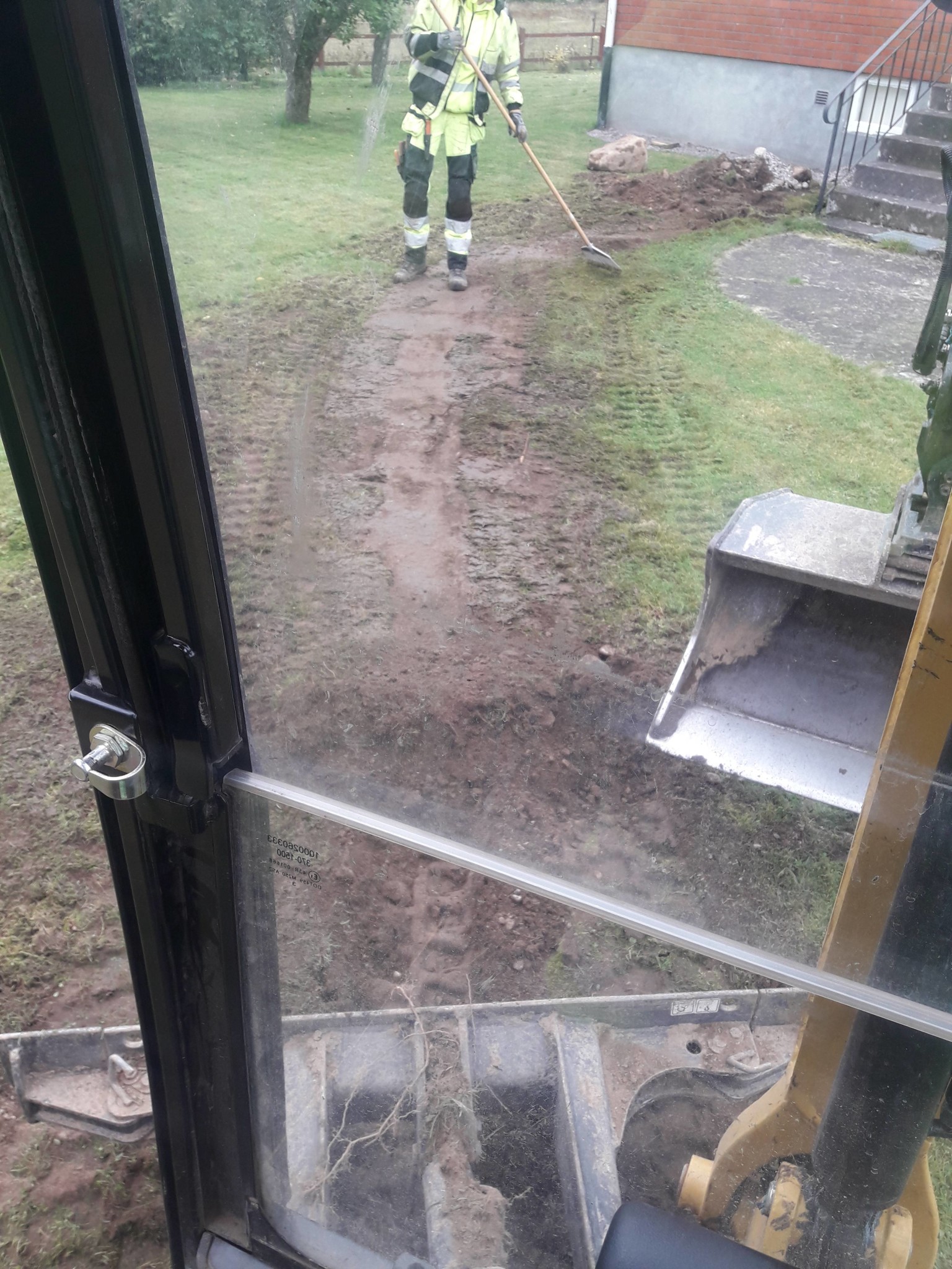 Exakt som nedan, De graävde under min häck sedan bredvid gången, Kom hem en dag och muttrade över att de inte drgit fibern. Kom ut och skulle kratta lite löv och se vid husväggen var det lite rör...