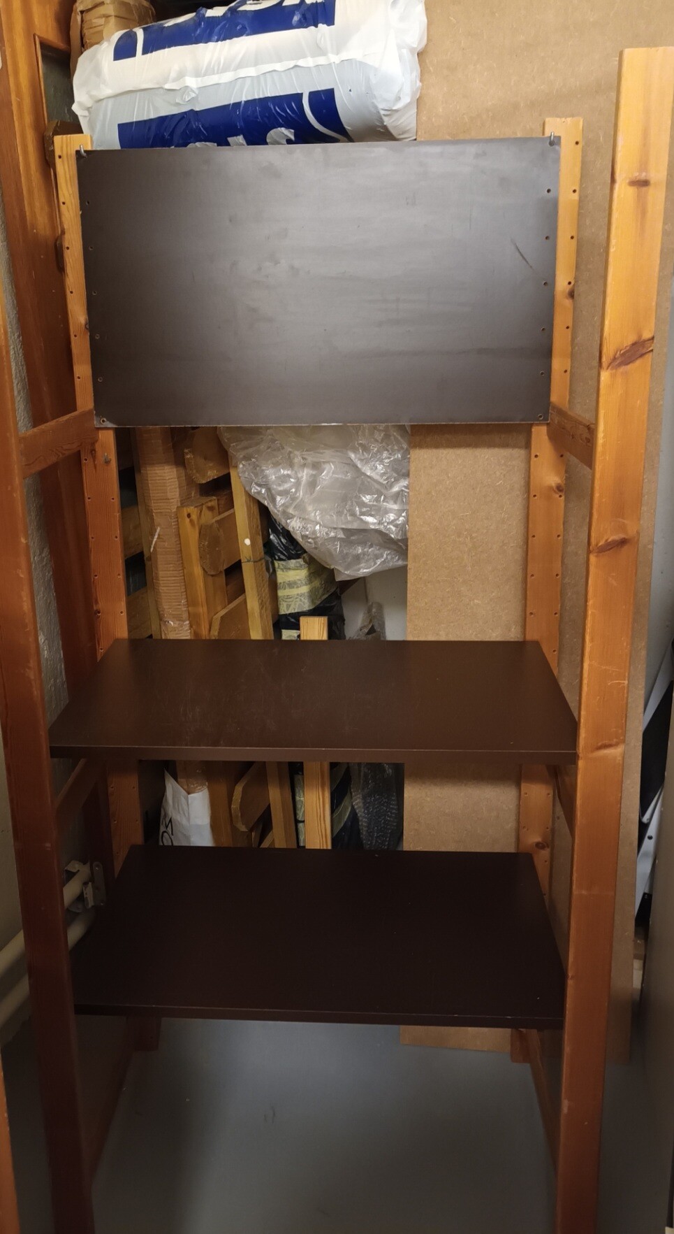 Jag försöker sätta ihop en gammal lagerhylla som togs ner inför en renovering, men har stött på problem. Det var inte jag som monterade ner den och tyvärr tänkte jag inte på att kolla hur den skulle monteras ihop. Jag har testat att sätta ihop den på alla möjliga sätt men är aldrig säker på att det är rätt.