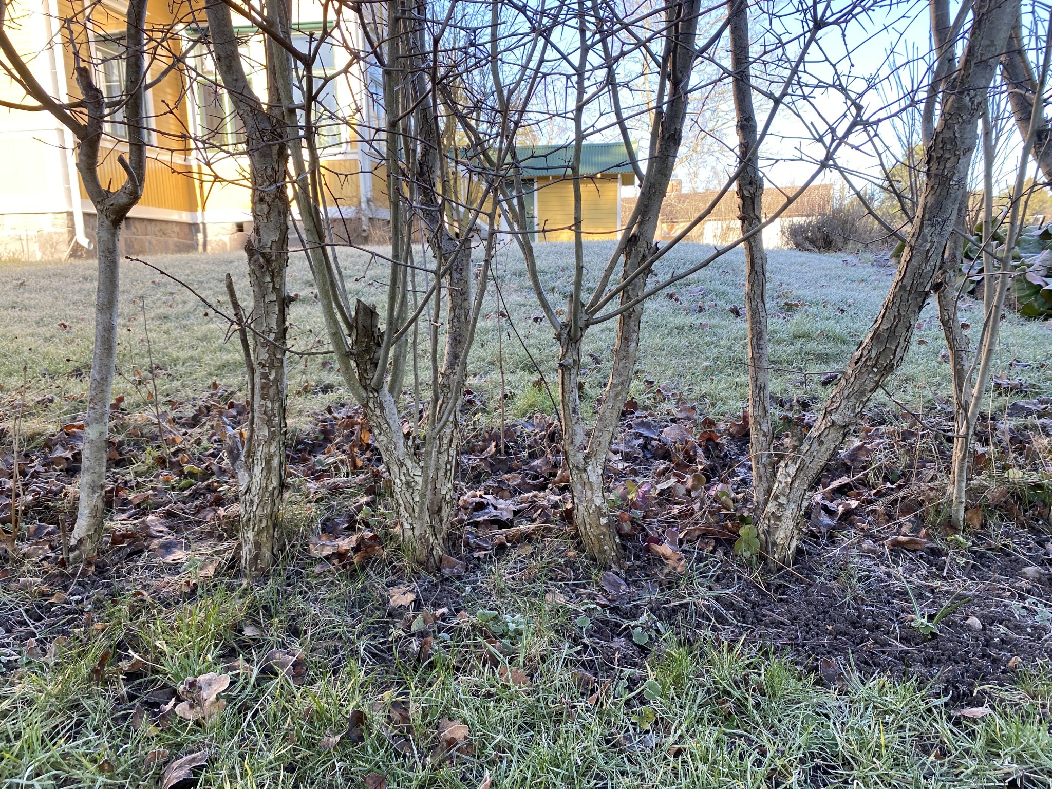 De nya skotten blev ofta närmare en meter höga under sommaren, lite beroende på hur många skott det blev på varje planta men ofta blev det nog 3-5 skott för varje avsågad stam, och alla överlevde väl inte men efter de där fyra åren så var det många tunnare stammar i stället för några få grova. Sen fick man ju fortsätta att beskära på ung. samma sätt för att de inte skulle bli för höga men det var ju betydligt mindre slitsamt att använda sekatören än att såga igenom 5 cm.