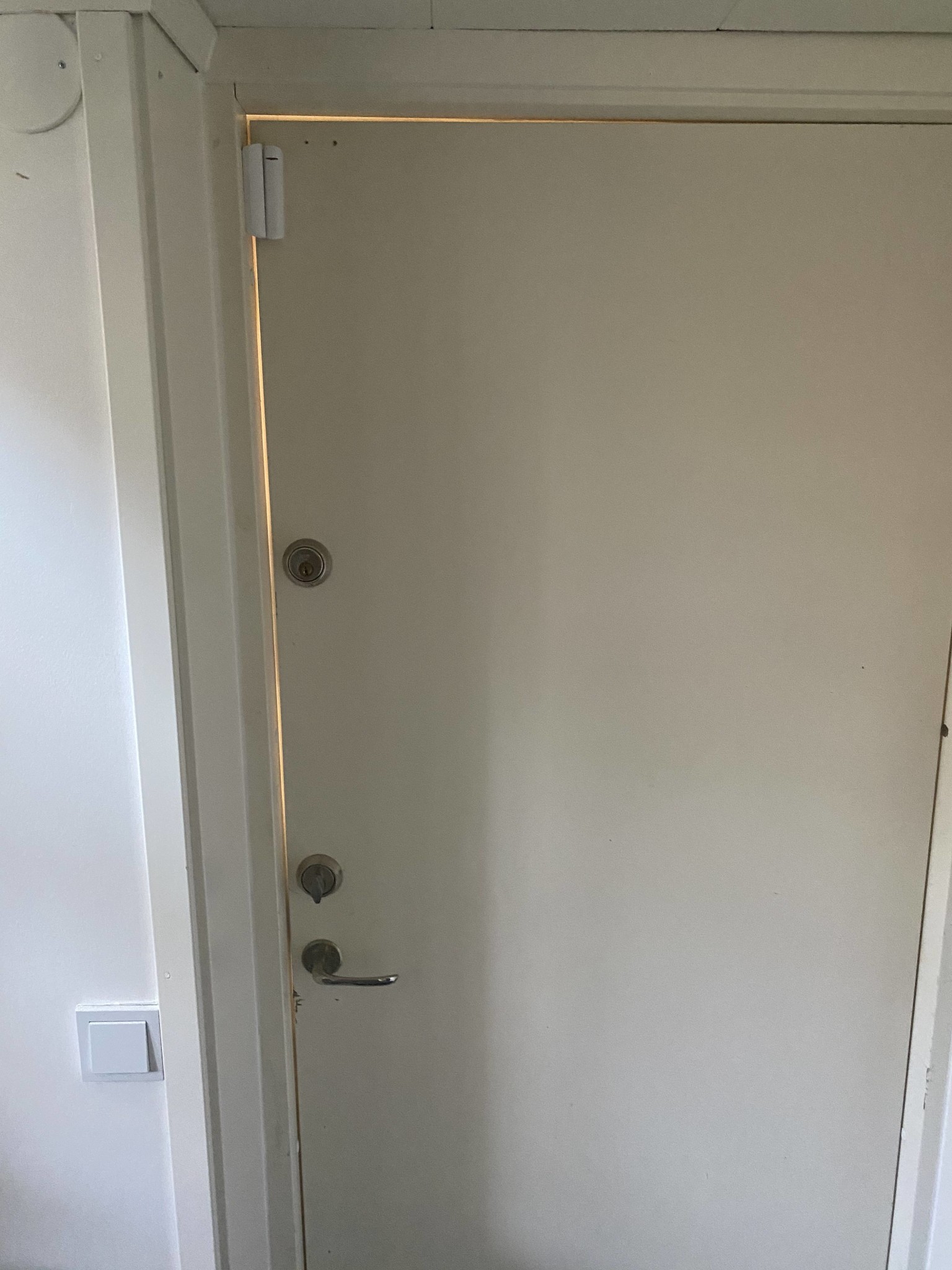 Min dörr till källarn ser ut såhär, som ni ser i övre vänstra delen så är det inte tätt där. Jag har testat nu med två stycken O formade tätningslister att få det tätt men det är fortfarande inte det.
