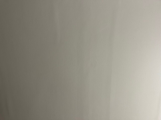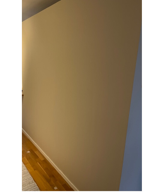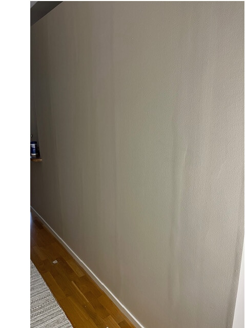 Väggen var tapetserad och jag skar bort tapetskarvarna och spacklade igen. Tyvärr blev slipningen alldeles för dåligt gjord och när man nu granskar arbetet i släpljus så syns ryggarna efter tapetskarvarna rejält.