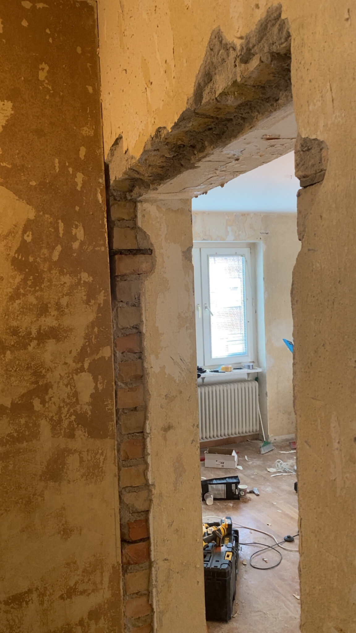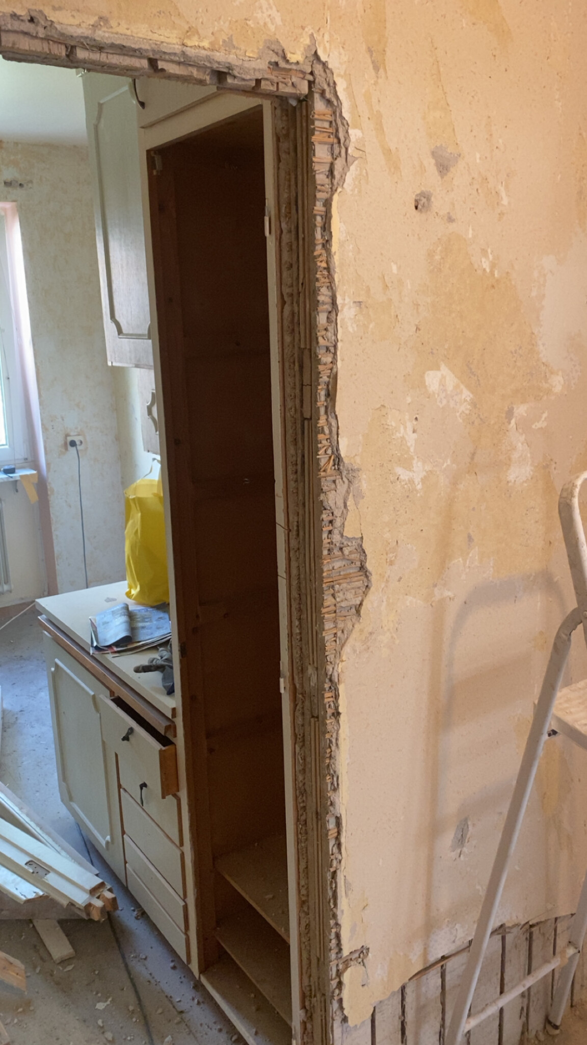 Sen dit med OSB+gips, eller bara gips innan du spacklar skarven mellan väggen och lagningen. För att det inte ska spricka så kan en remsa glasfiber/microlit eller liknande läggas in i spacklet för att armera det.