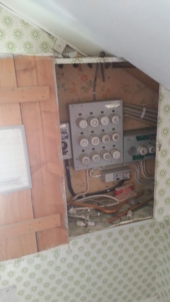Allt är utanpåliggande, huvudkabeln kommer in bakifrån i väggen. Det som jag tror mest på just nu är att göra klart väggen som går parallellt med denna vägg först och sen sätta upp den nya centralen på den väggen istället. Så att jag flyttat hela centralen istället för att ta bort och sätts dit på samma ställe.