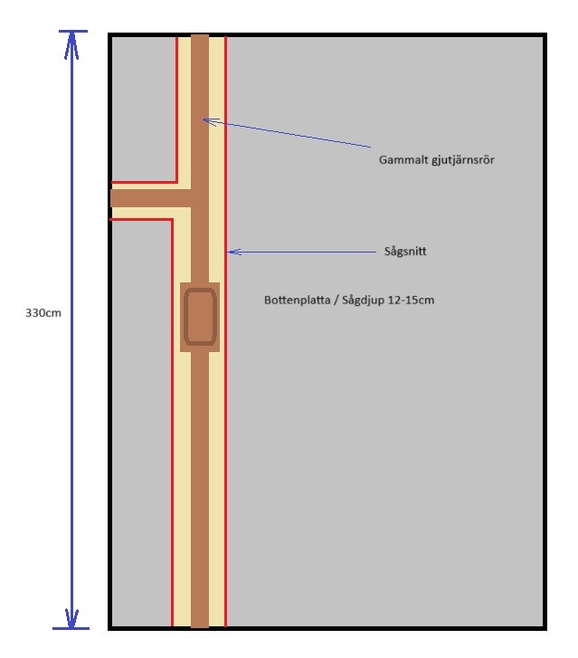 Det var dock tur i mitt fall då det var stensatt under plattan och det hade varit svårt om se bara kapat genom betongen.