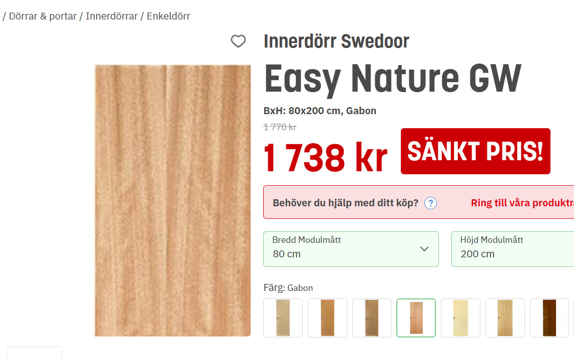 Jag ska köpa en innerdörr av märket Sweedoor. Det är modell Clever Line Easy Nature.