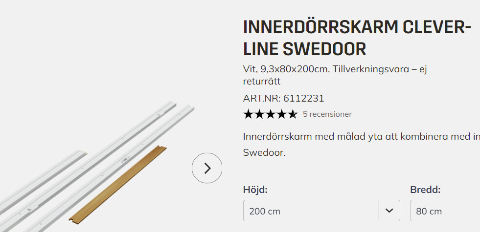 Till det behöver jag köpa dörrkarm, tänker då att det bästa är att köpa samma märke; Sweedoor och även där modell Clever Line.