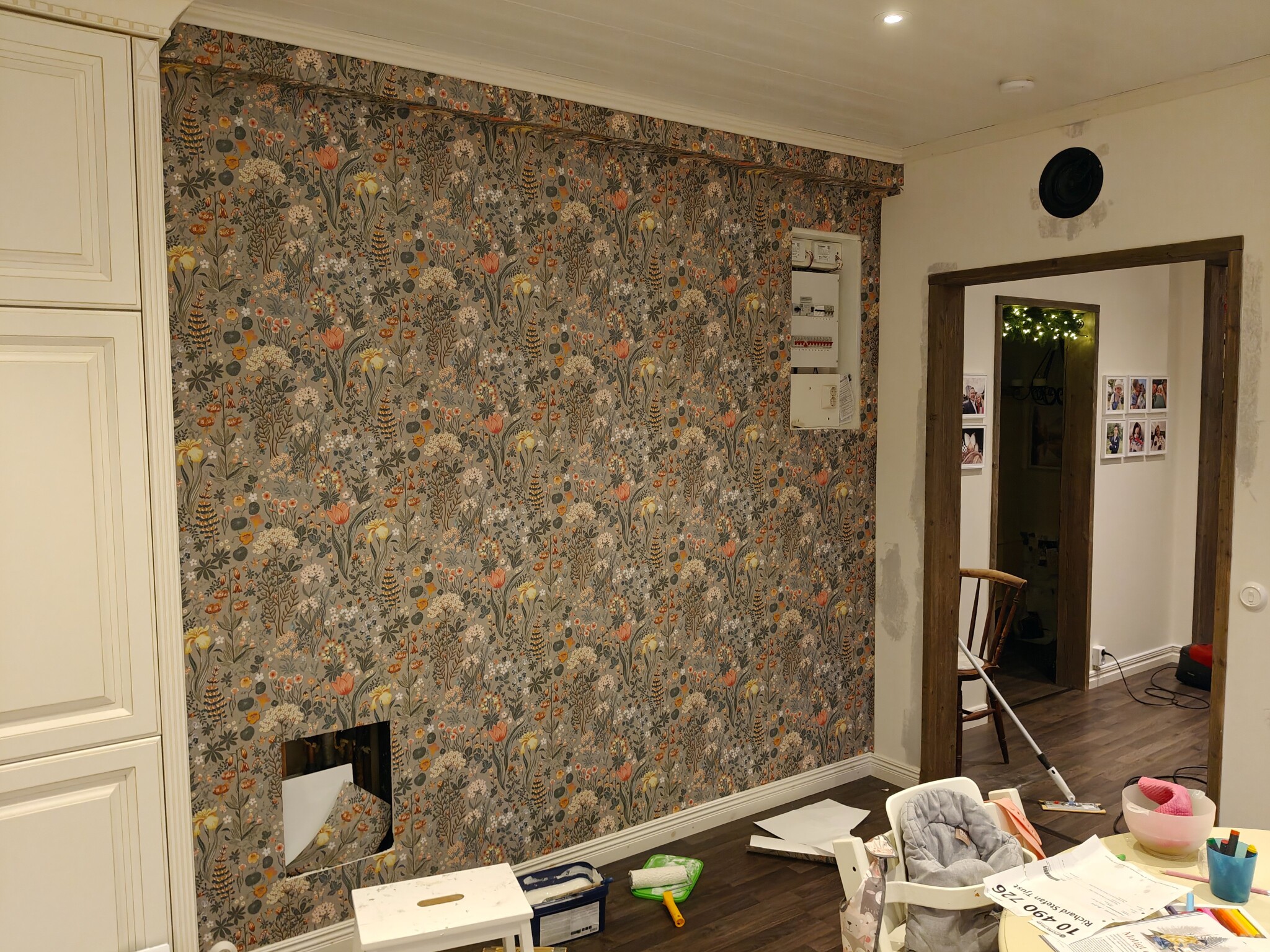 Tapeten ska sen fortsätta på nästa vägg till höger.