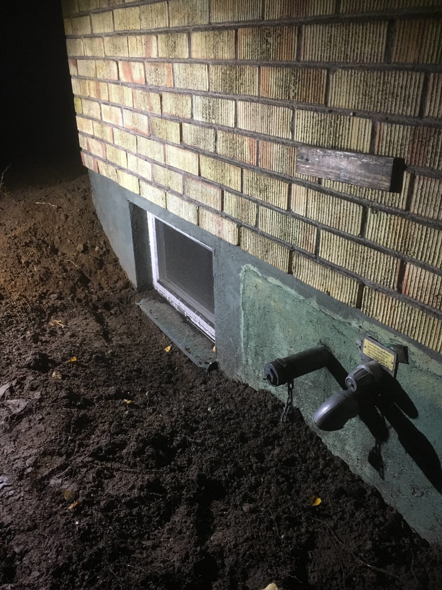 Du måste ta bort så mycket jord framfför och vid sidorna att vatten som träffar fönsterblecket kan rinna av.