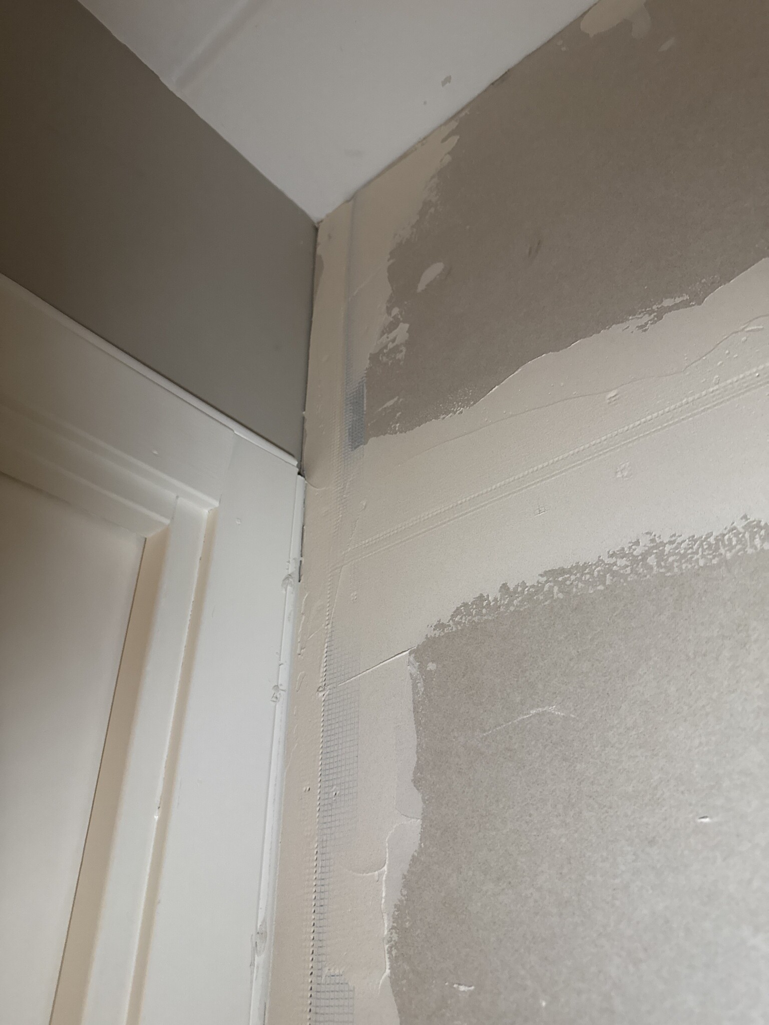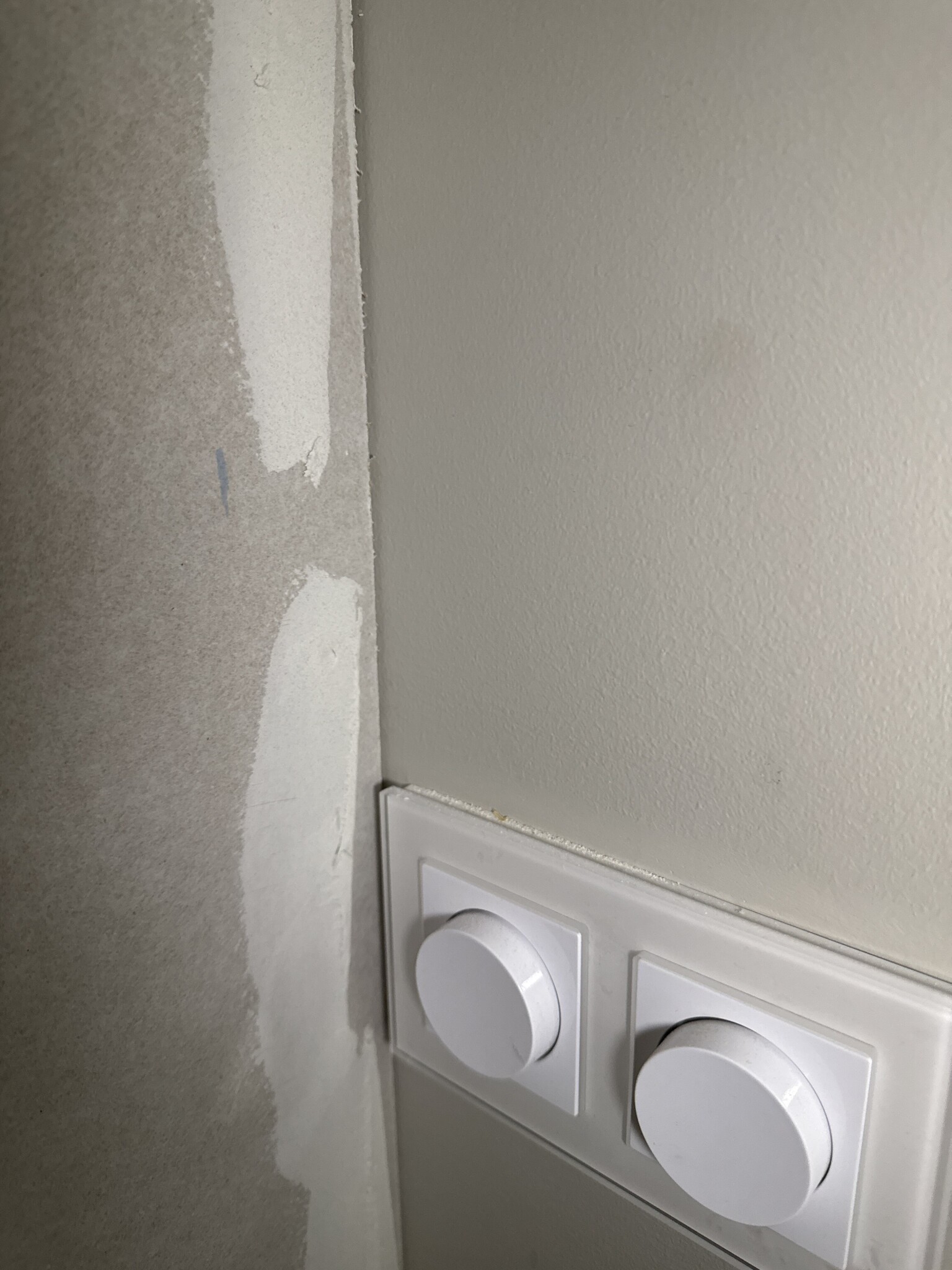 Med det sagt och de förutsättningarna, så kommer frågan: svärfar hjälpte och att spackla första omgången, men gjorde ingenting i hörnen. På två av ställena är det lite mer avstånd mellan gips och anslutande vägg. En granne föreslog att sätta skarvremsa/spackelpapp (vad det nu faktiskt heter i hörnen och spackla över, men svärfar tänkte bara foga i hörnen (och mellan gips och tak då vi inte ska ha taklister). Dessutom var ena sidan av väggen tvungen att hamna väldigt nära en lampknapp samt dörrkarm till annat rum vilket gör det svårt att sätta skarvremsa och kanske därför han bara tänkte foga?