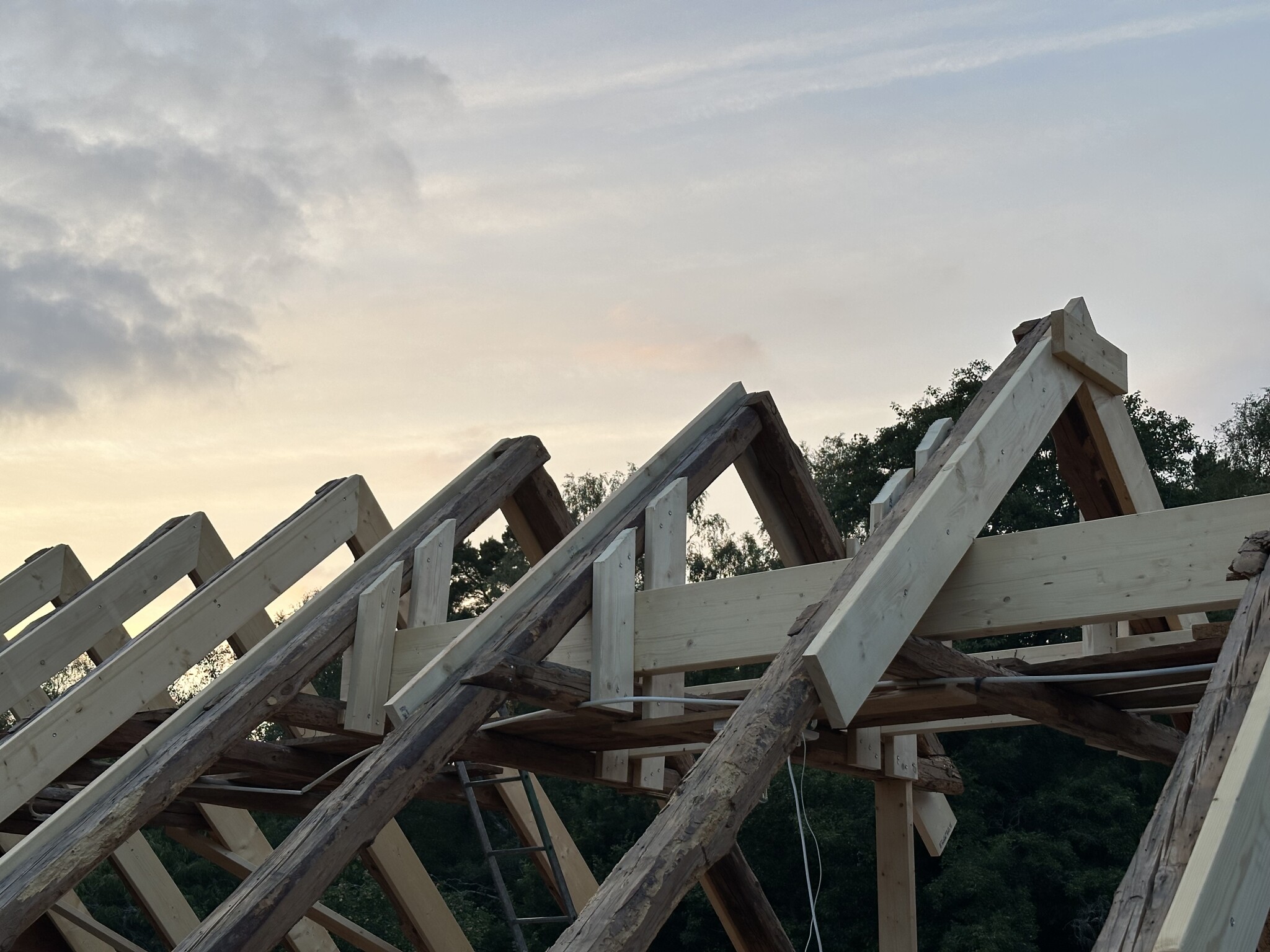 Tack! Det har tagit sin lilla tid ska jag säga med det fantastiska sommarvädret vi haft i år hitintills.. (sarkasm). Förra helgen var en stor milstolpe när jag växlade av 4 takstolar till de två kupor som ska byggas.