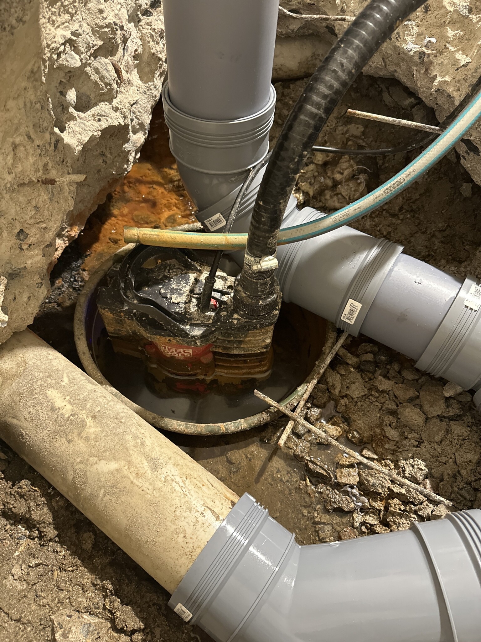 Jag har gjort en provisorisk pumpbrunn för att håla undan vattnet. Nu är snart nya avloppet färdigt och det är dags att armera och gjuta igen. Så därav min fråga…