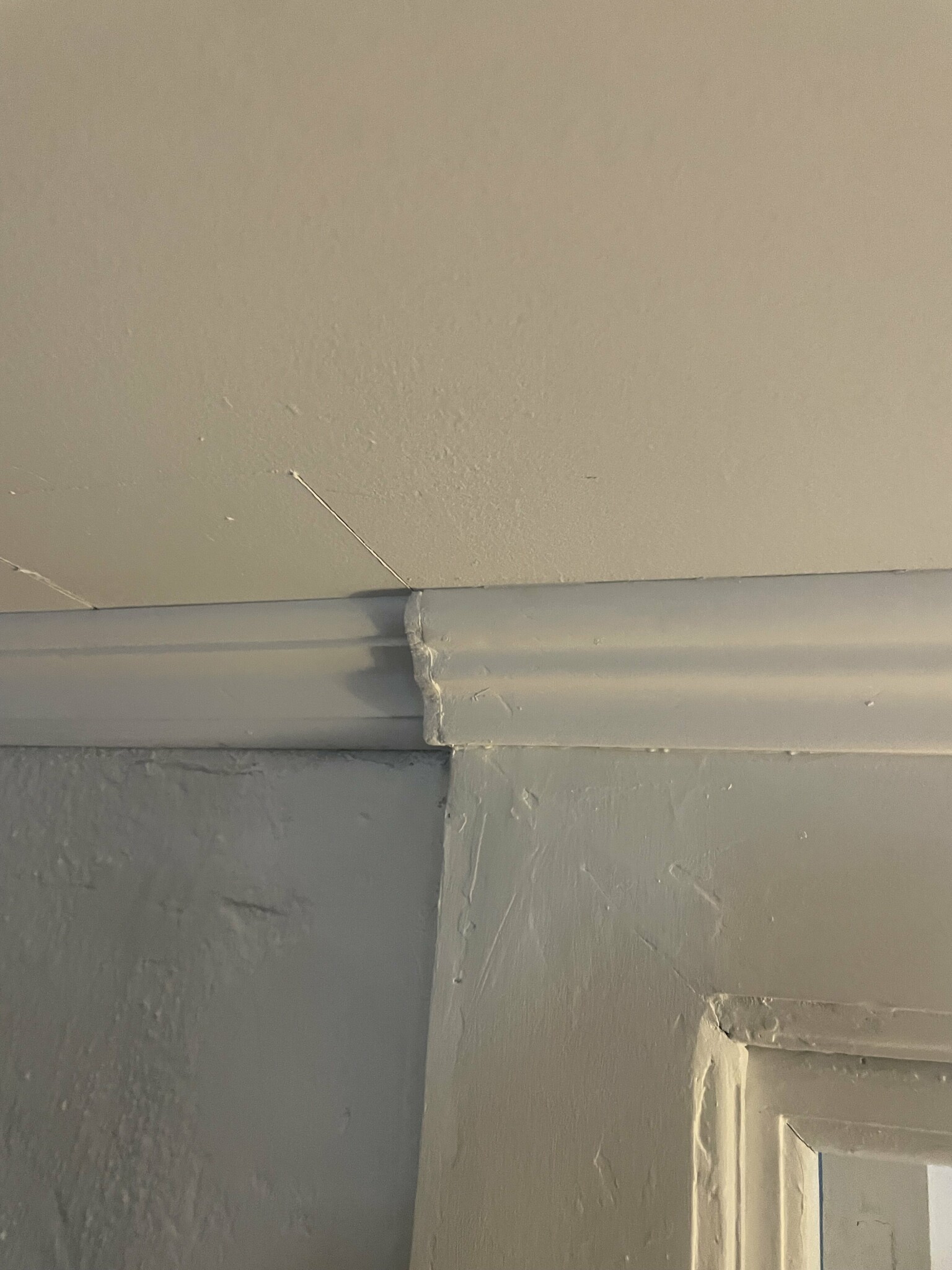 I övrigt hade jag kapat listen lika lång som fodret och målat änden. Sen hade listen mot väggen bara fått fortsätta där fodret slutar.