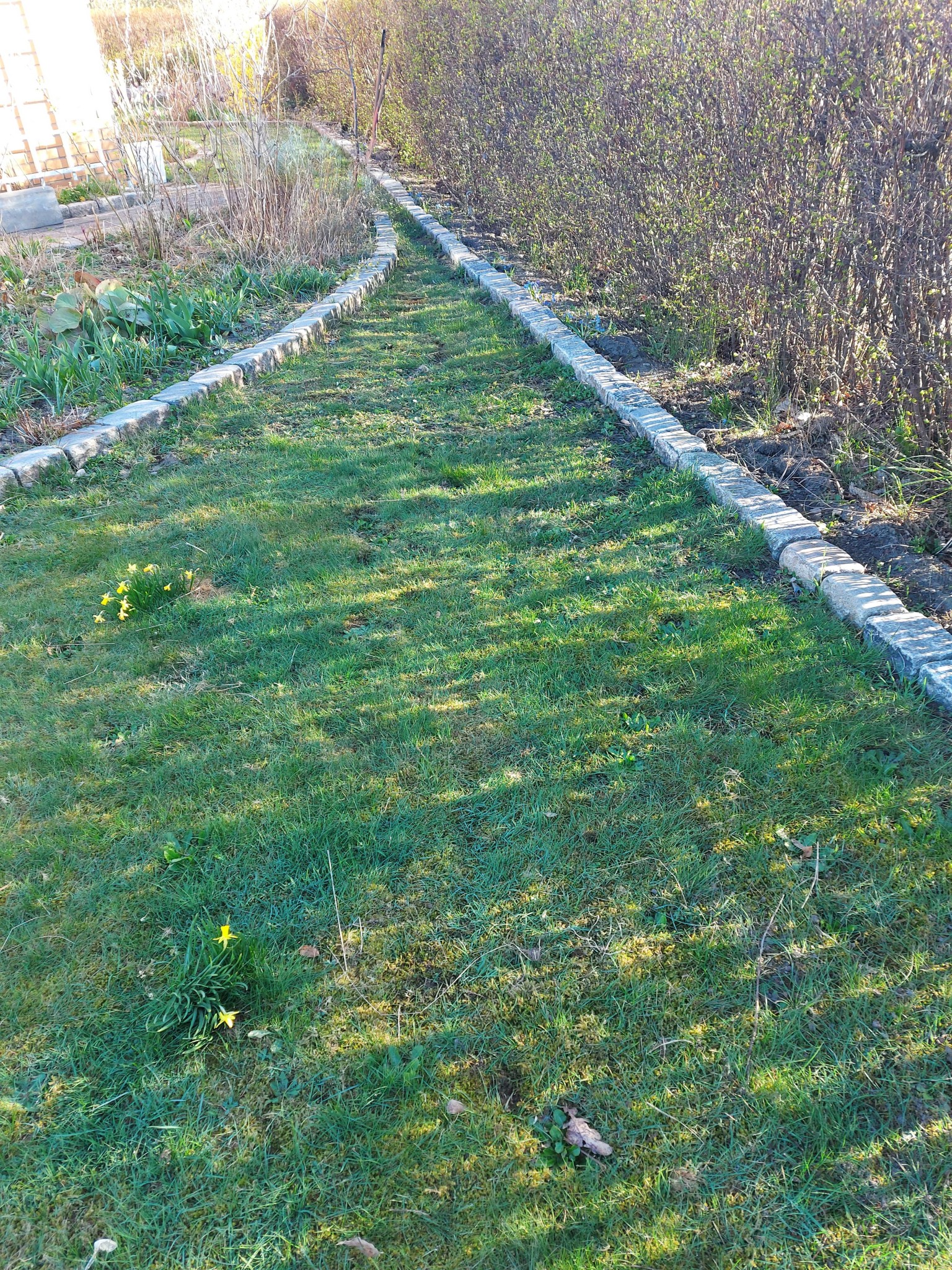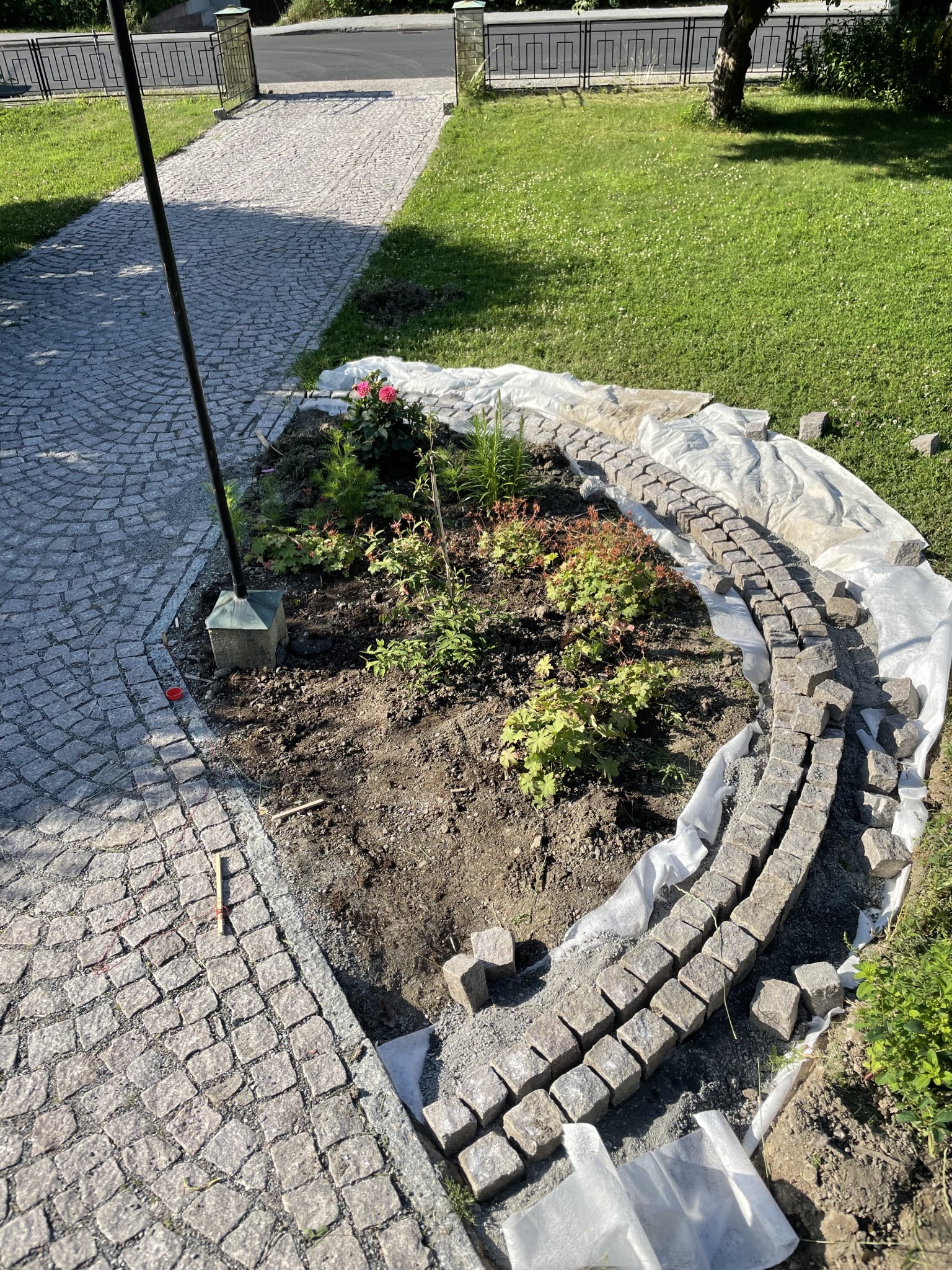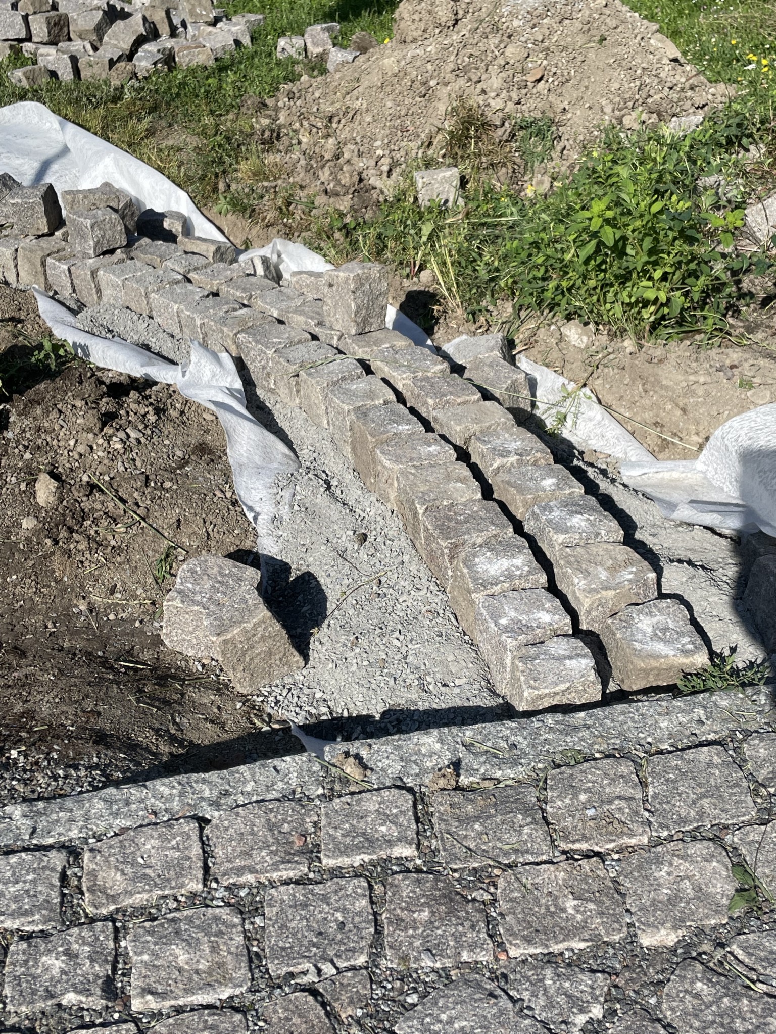 vi har precis avslutat en sättning av kantsten. Delar av kanten är i en lättare sluttning. Hur skulle ni avsluta på bästa/enklaste sätt?