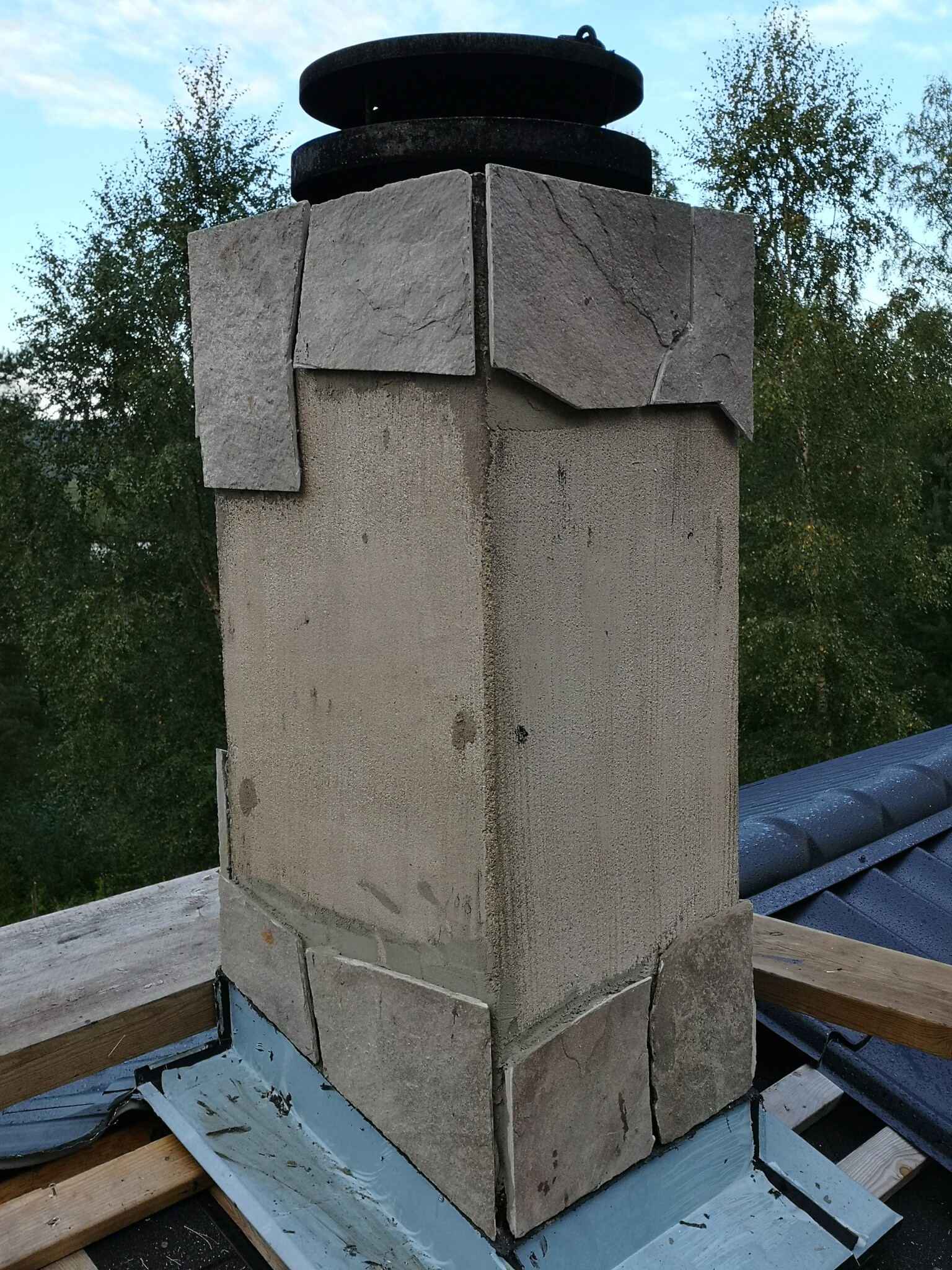 vi har bytt tak och det har blivit fint. Det skulle kosta 20000 extra att klä vår befintliga skorsten i plåt (samma material som det övriga taket). Skorstenen är 50 år gammal och nu ser den trist ut i sin nya omgivning. Går det att snygga till den på något sätt? Materialet är röd tegel.