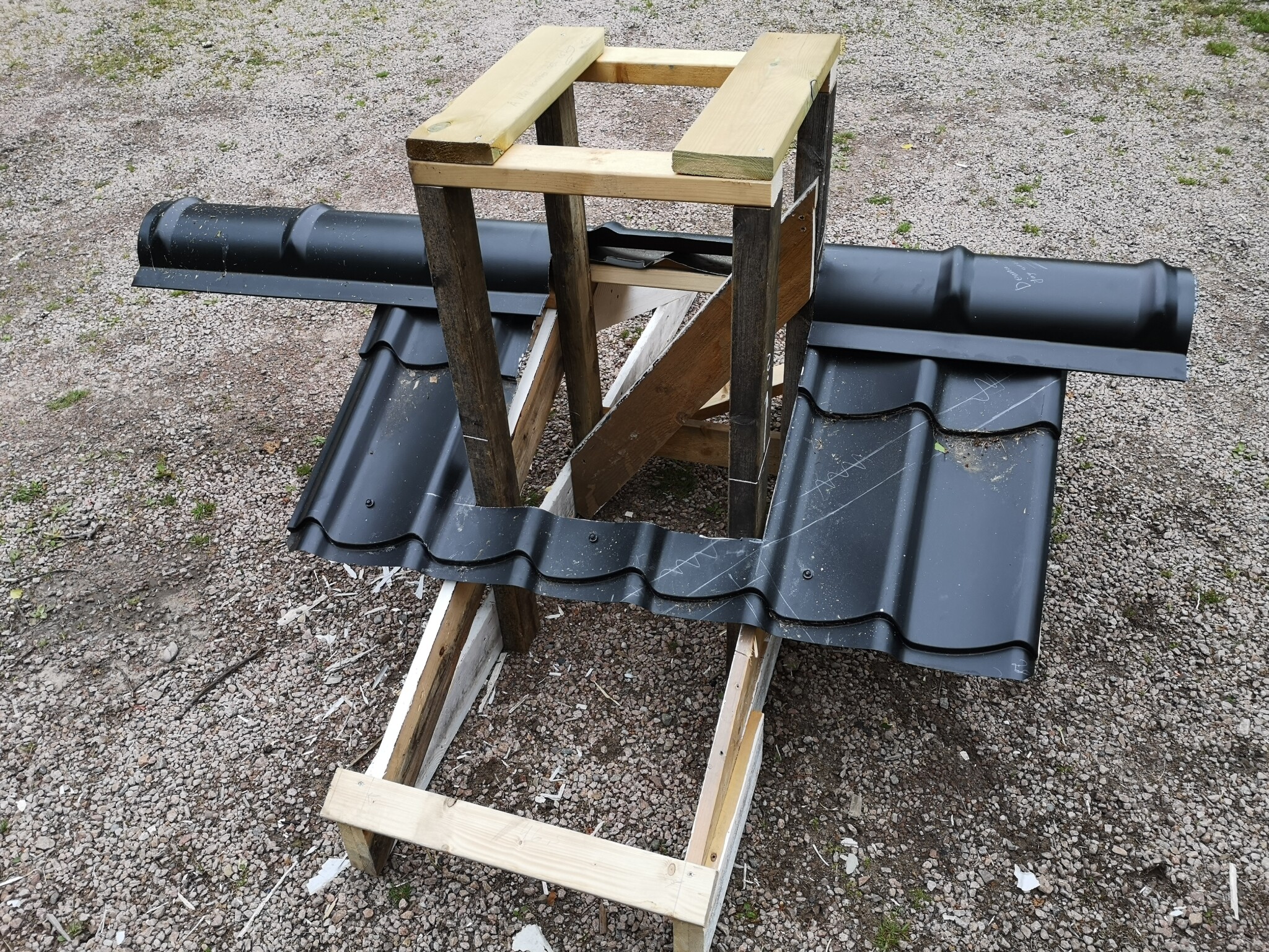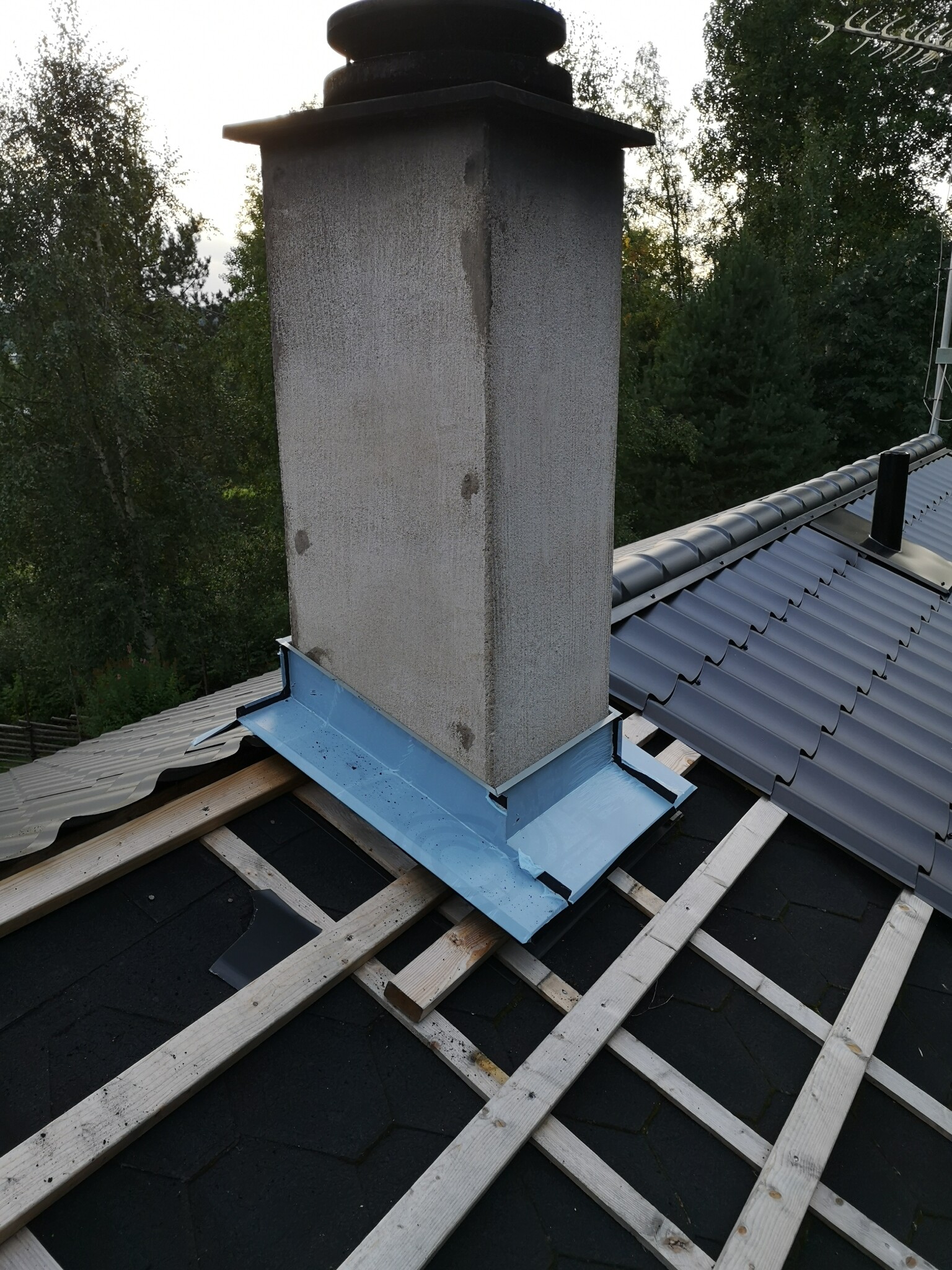 Skorstensbeslaget tillverkat av plåtslagare, ca 1000 kr.